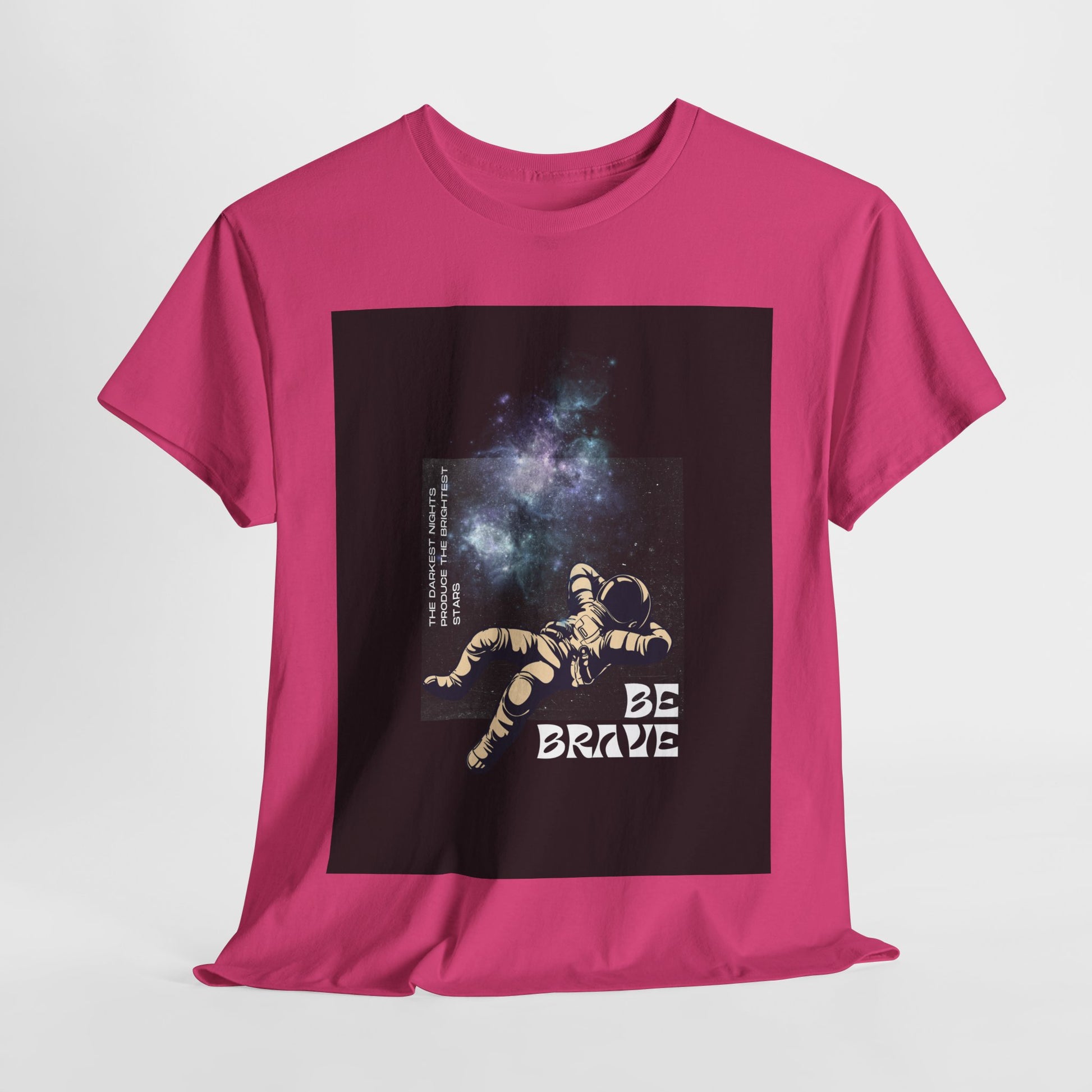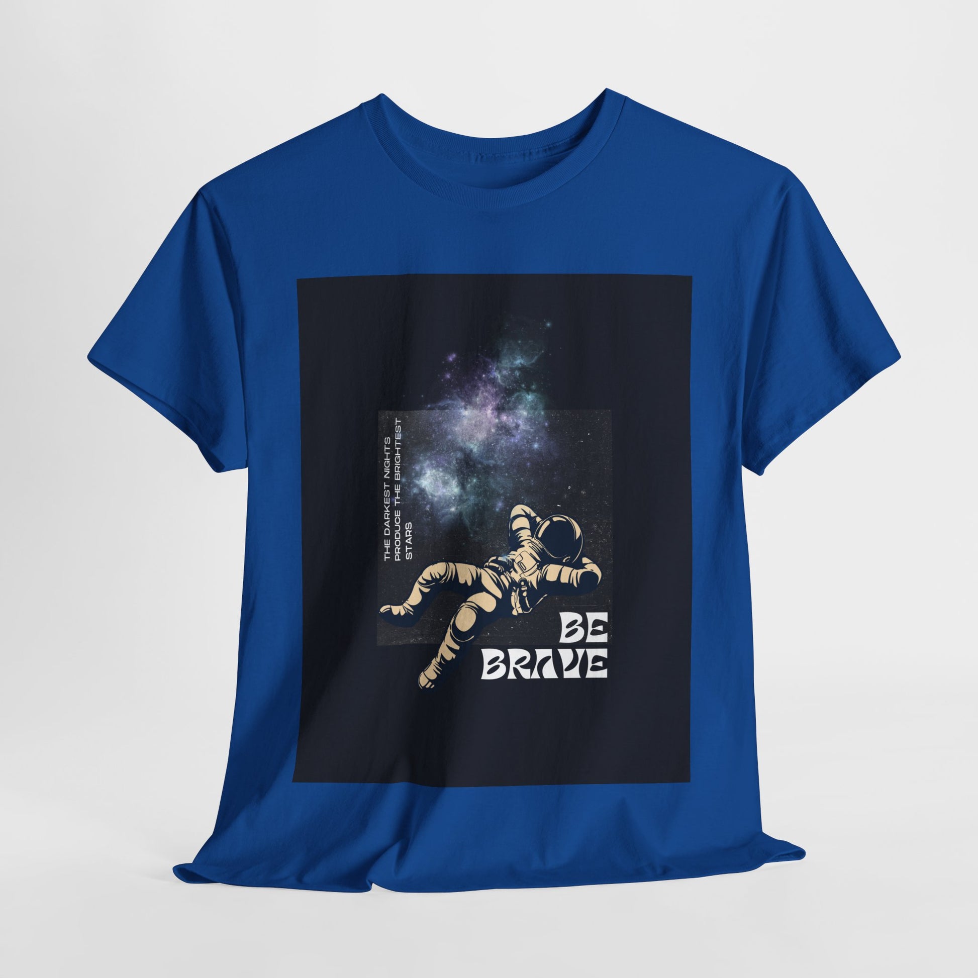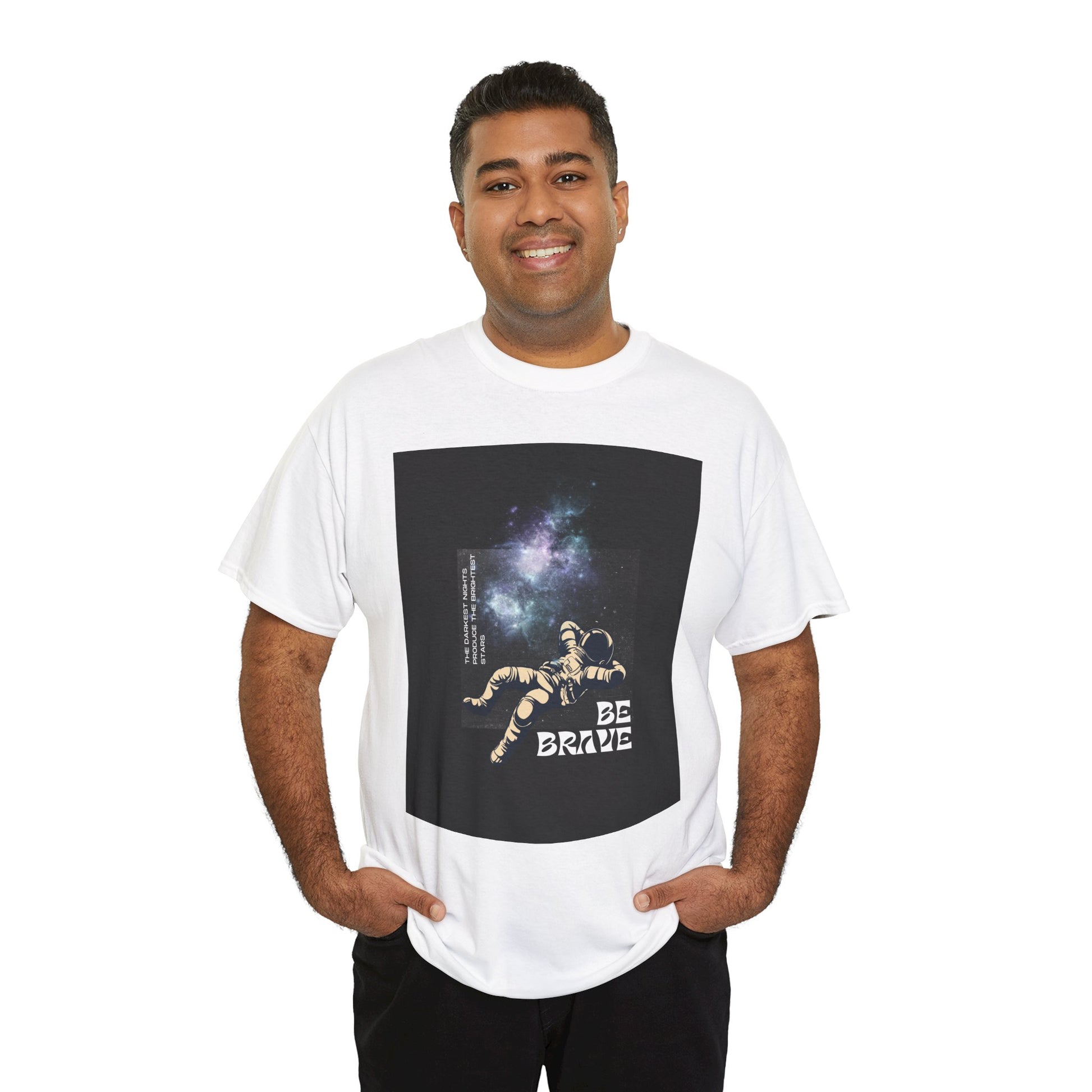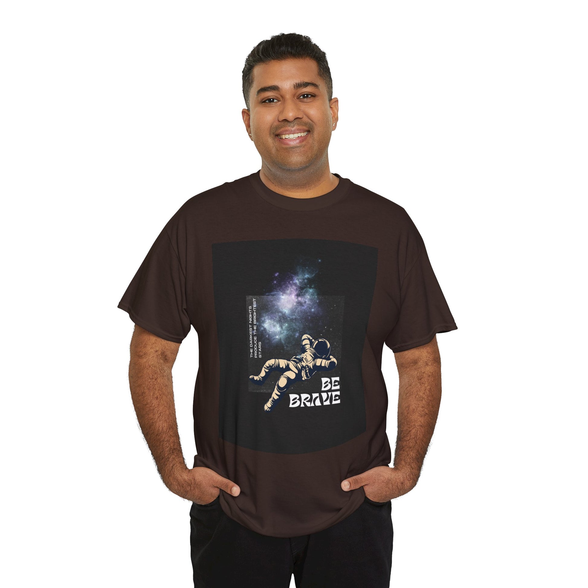 With sizes ranging from Small to 5XL, this tee ensures an inclusive fit for all. Whether you're looking for an inspirational gift or a comfortable, eco-conscious addition to your wardrobe, the "Be Brave Tee" delivers both style and substance. The space-themed graphic adds a bold, uplifting touch, making it a standout piece for those who want to wear positivity every day.