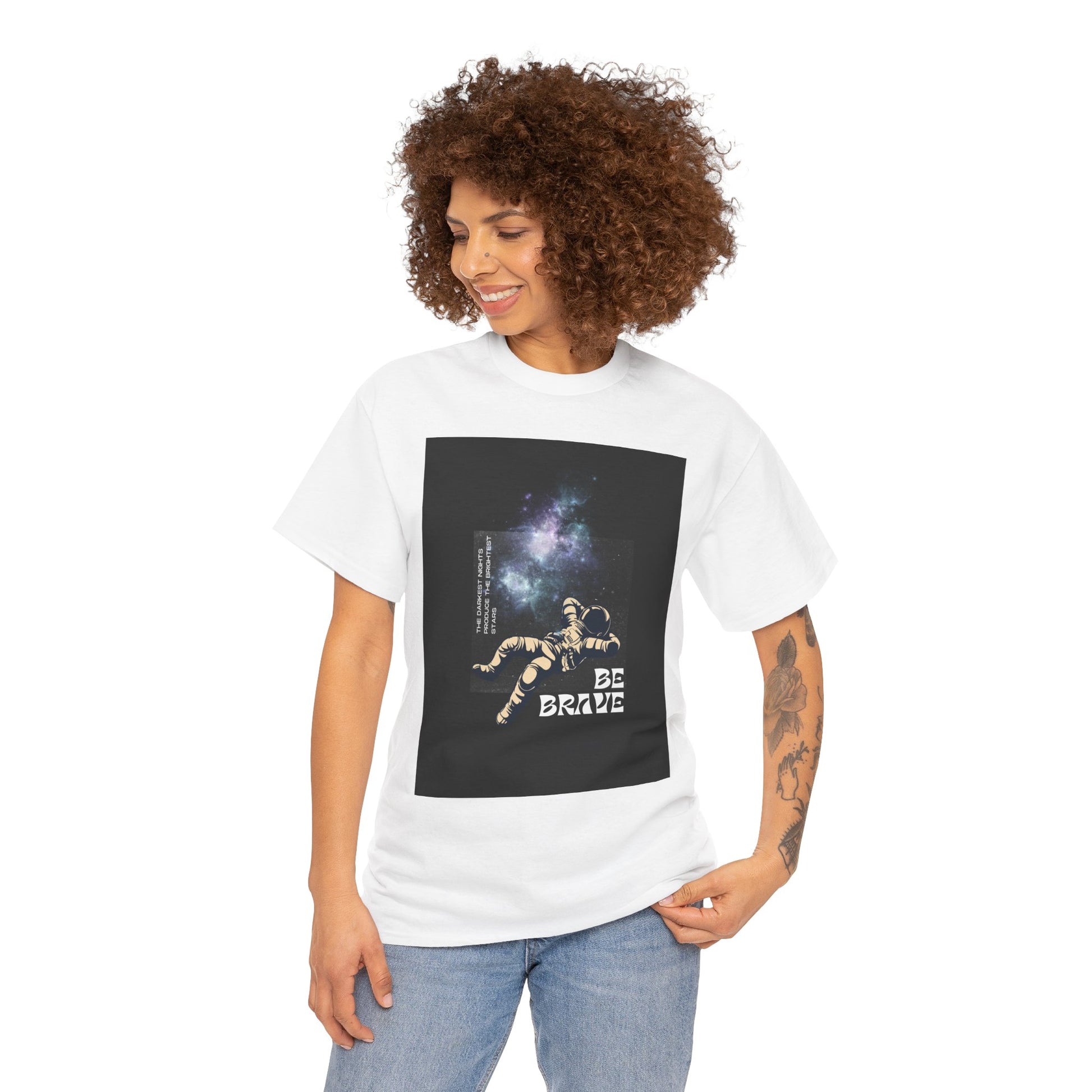 Be Brave Tee, Inspirational T-Shirt, Unisex Cotton Top, Space Graphic Shirt, Motivational Gift, Everyday Wear