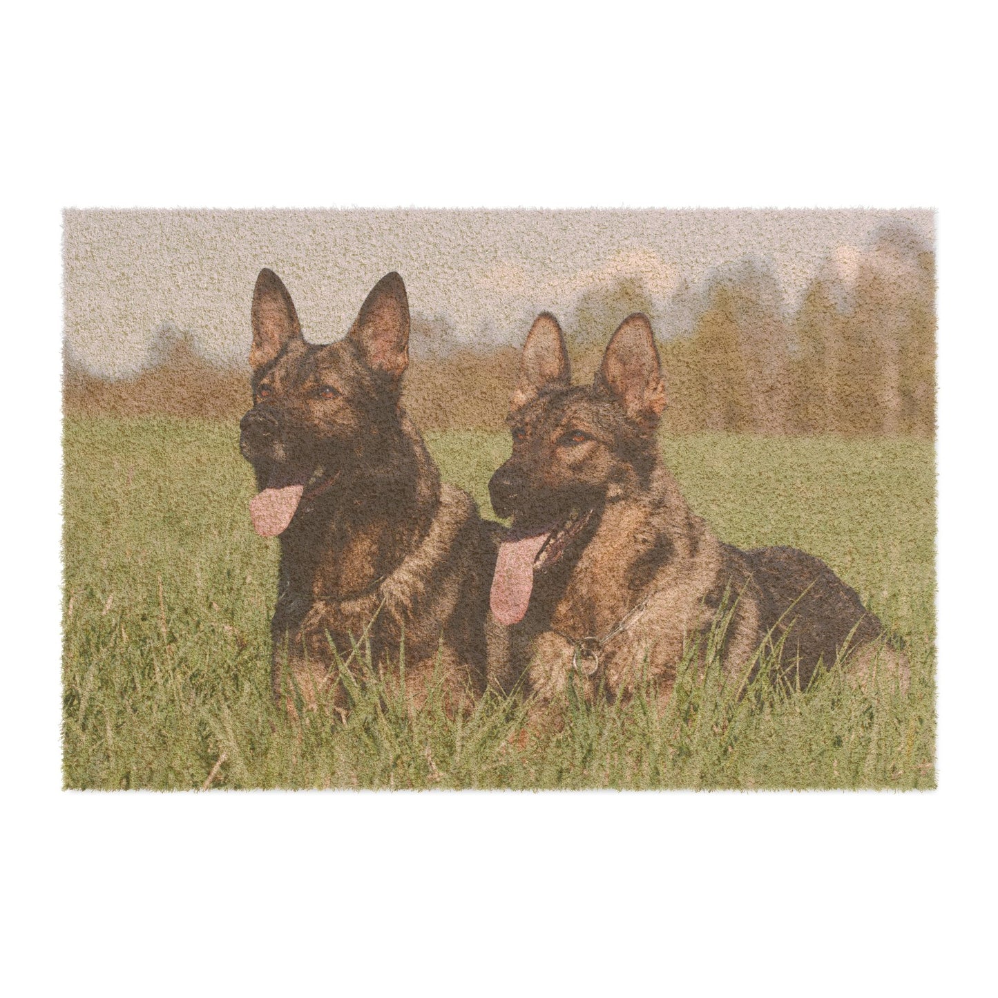 Make a powerful first impression with this premium German Shepherd doormat, featuring two majestic working line GSDs standing guard. Measuring 24" × 16" (61cm x 40.6cm), this heavy-duty mat is constructed from military-grade coconut coir fiber that aggressively scrapes away dirt, mud, and debris while the slip-resistant vinyl backing keeps it firmly in place. The ultra-realistic design showcases these impressive protectors in perfect alert stance, creating an eye-catching display that celebrates your passion for working dogs.