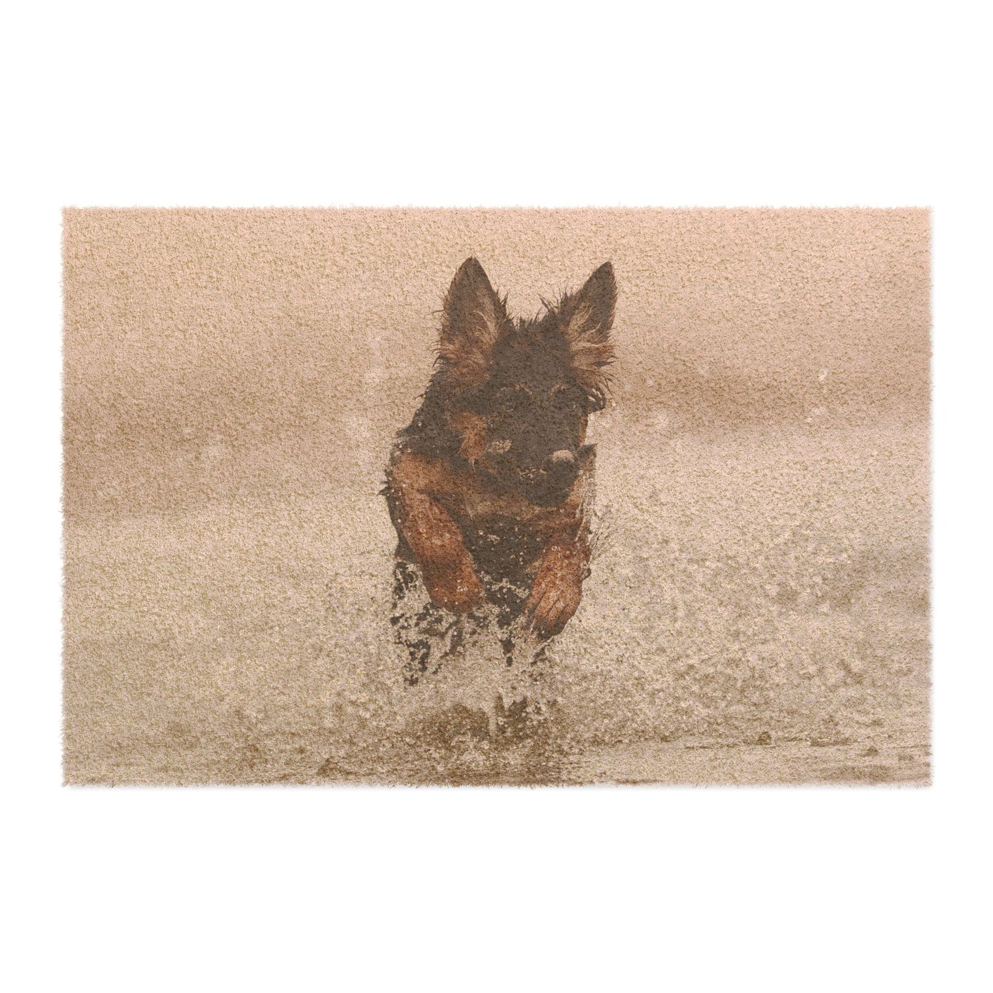 Dog Lover Doormat Featuring a Stunning German Shepherd Puppy Jumping in the Water