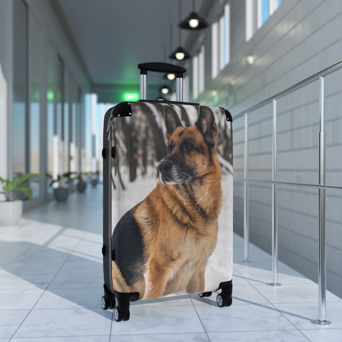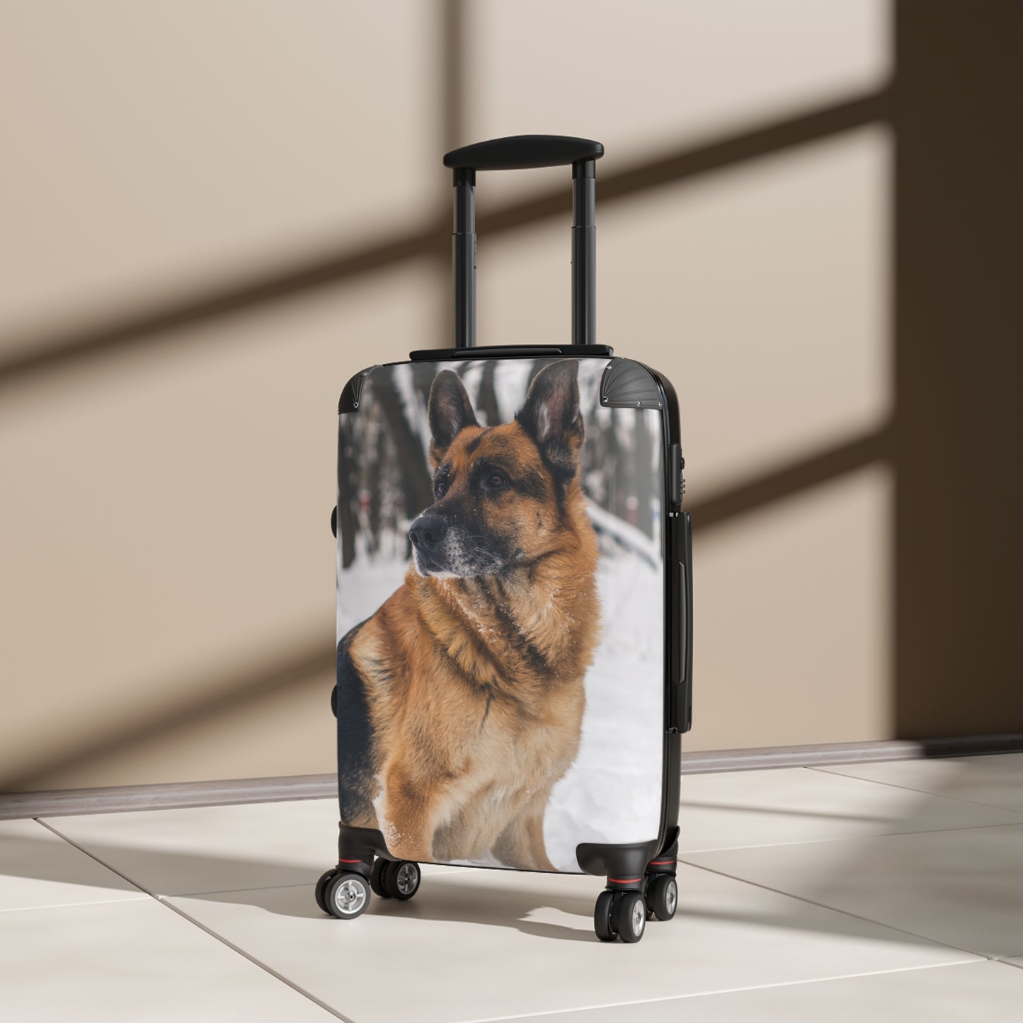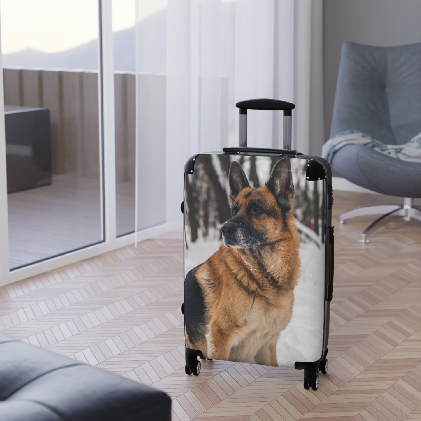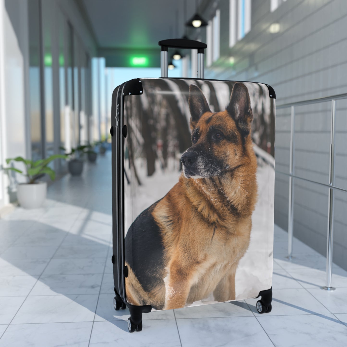 Dog Lover Suitcase Featuring a Beautiful German Shepherd Sloppily Sitting on the Snow
