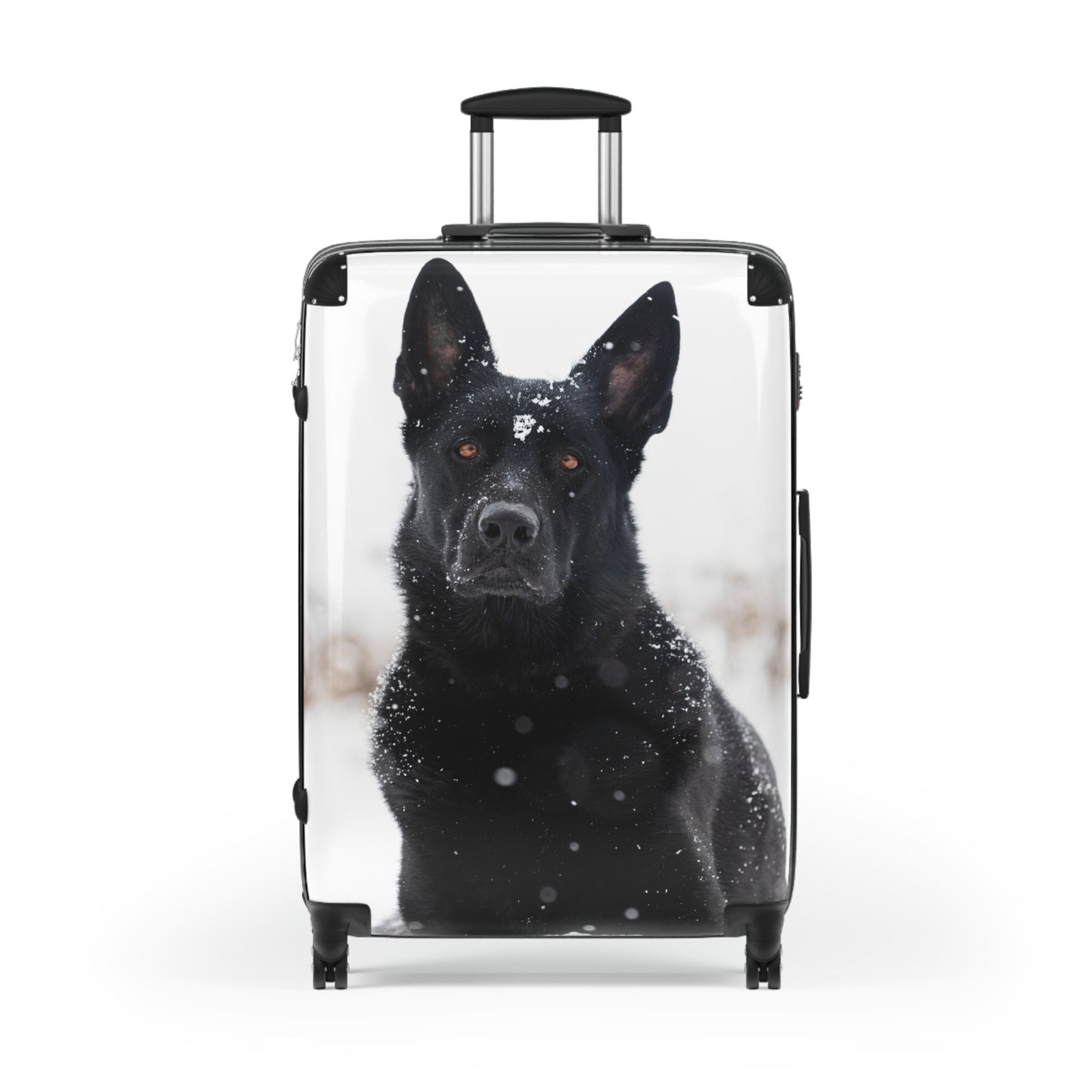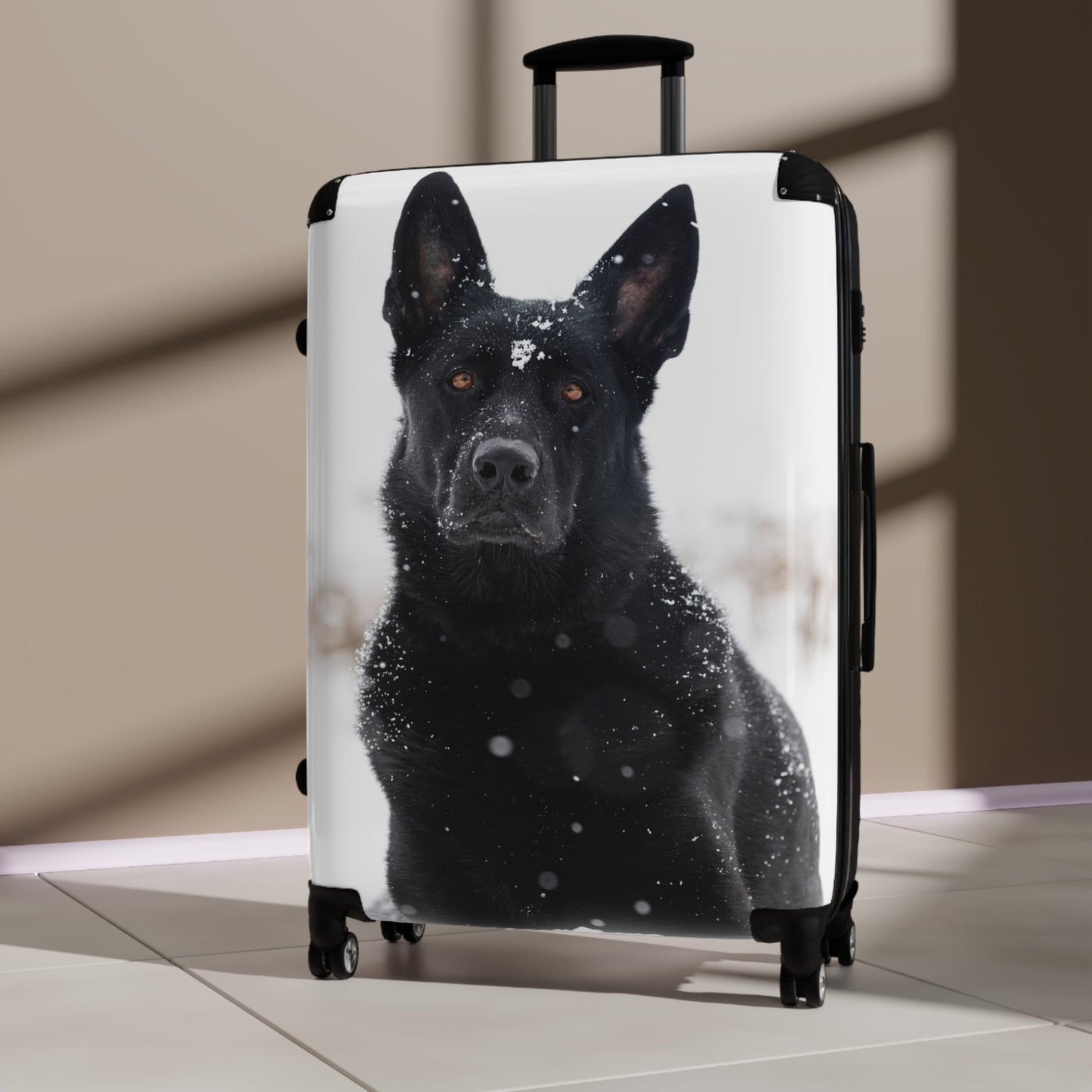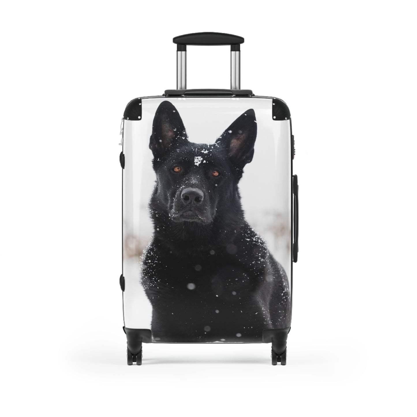 Dog Lover Suitcase Featuring a Giant Black Working Line German Shepherd In the Snow