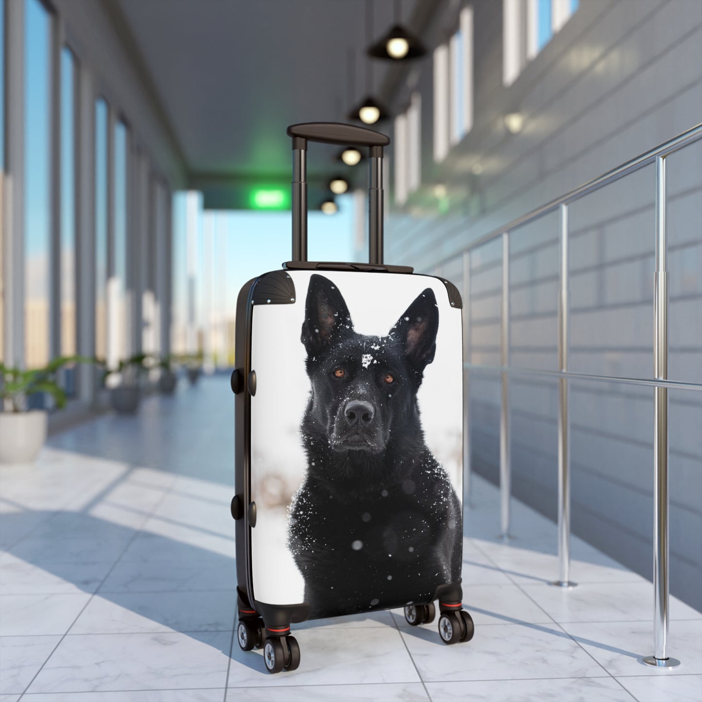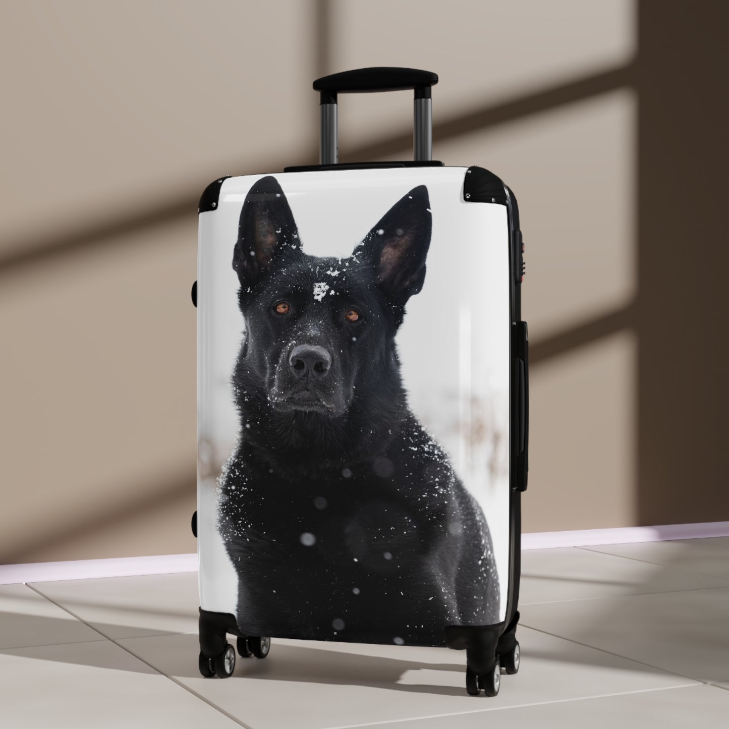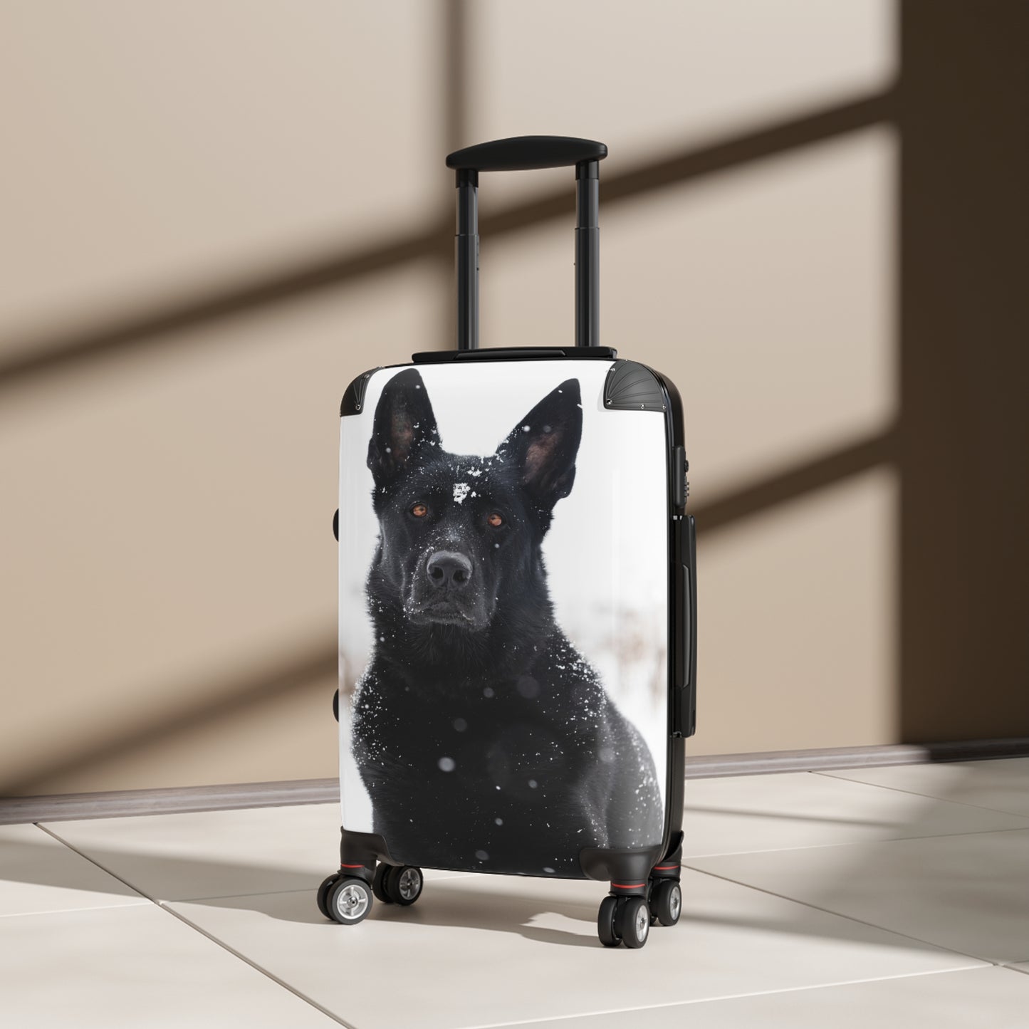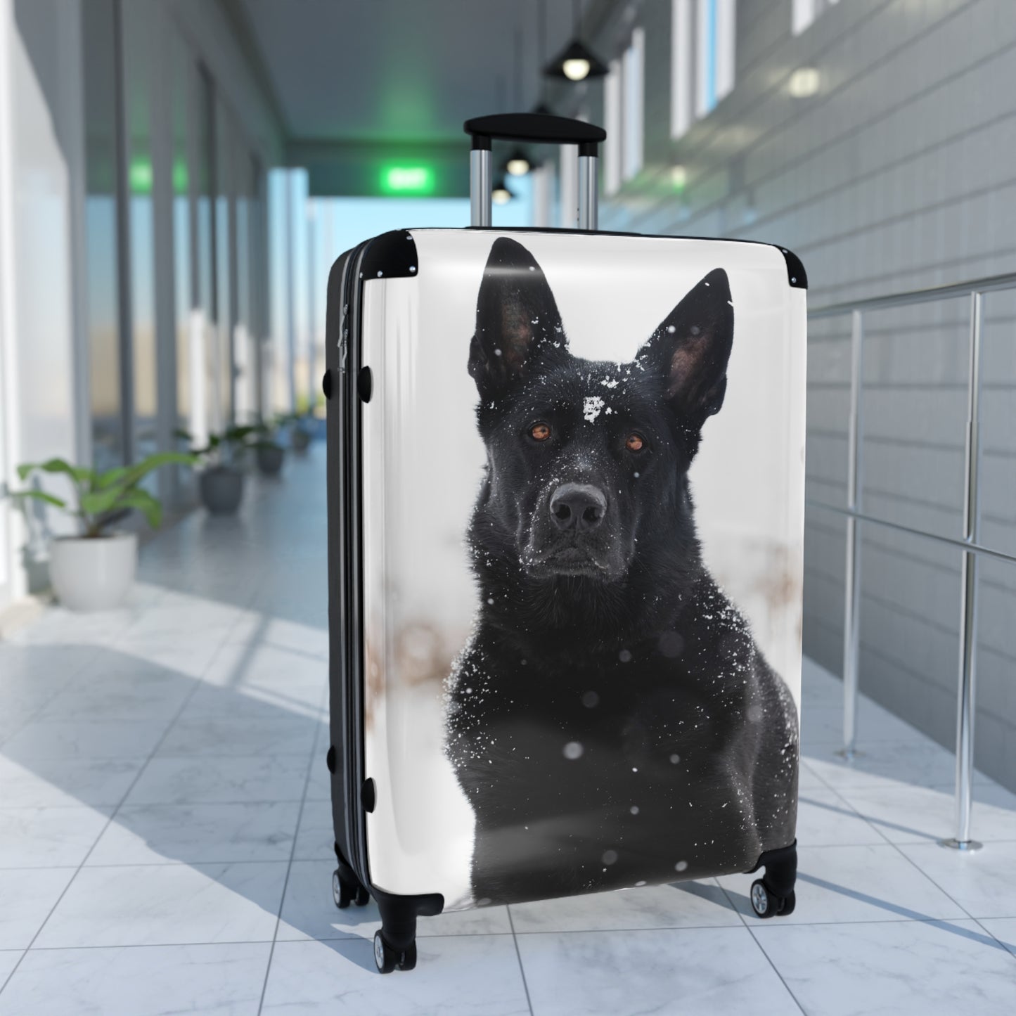 Dog Lover Suitcase Featuring a Giant Black Working Line German Shepherd In the Snow