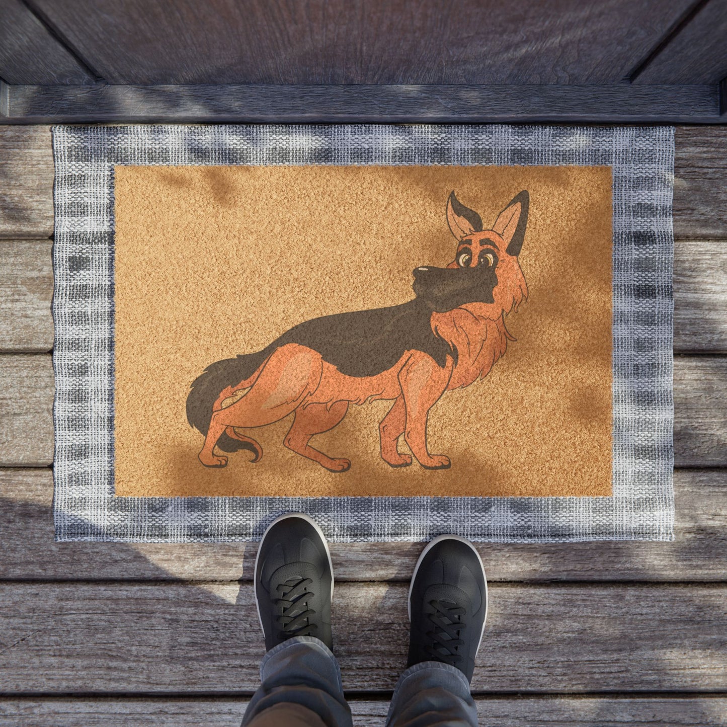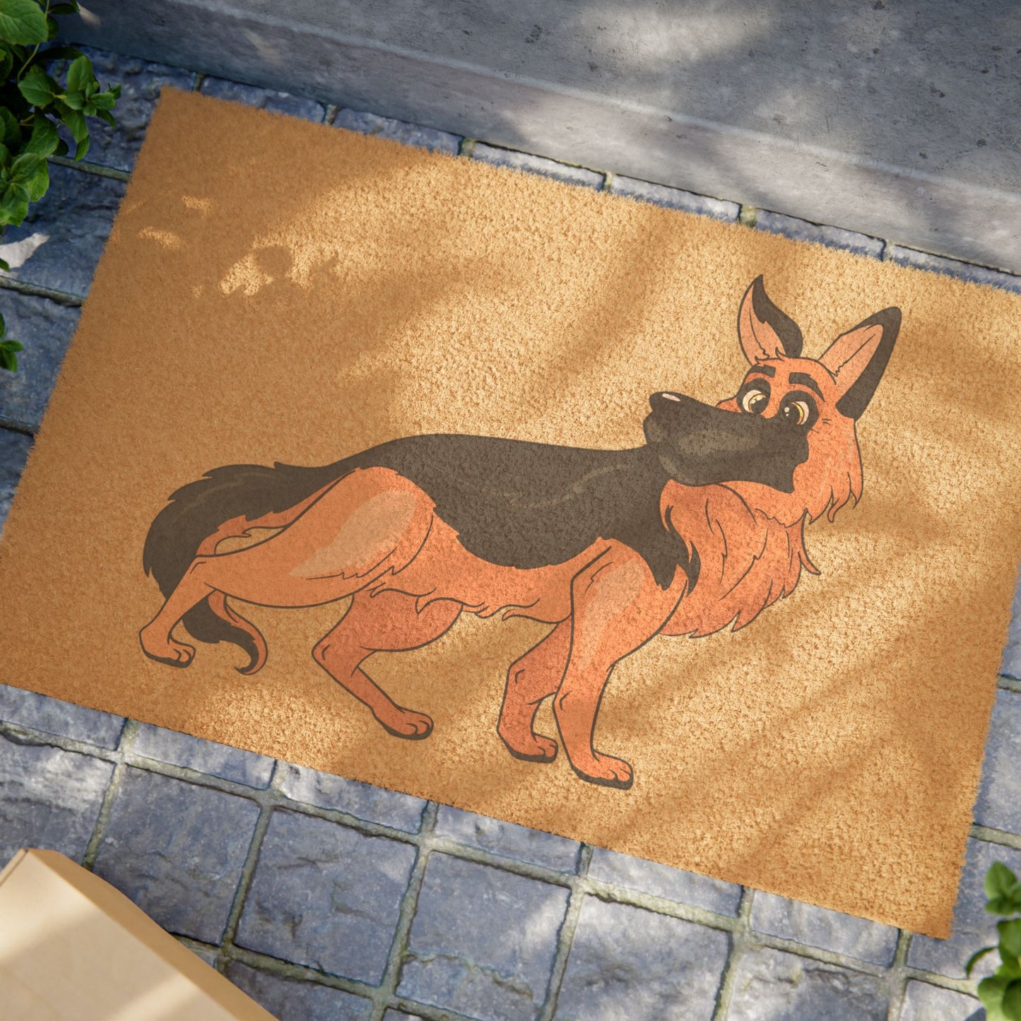 Dog Lovers Doormat Featuring a Cartoon German Shepherd Turning His Head