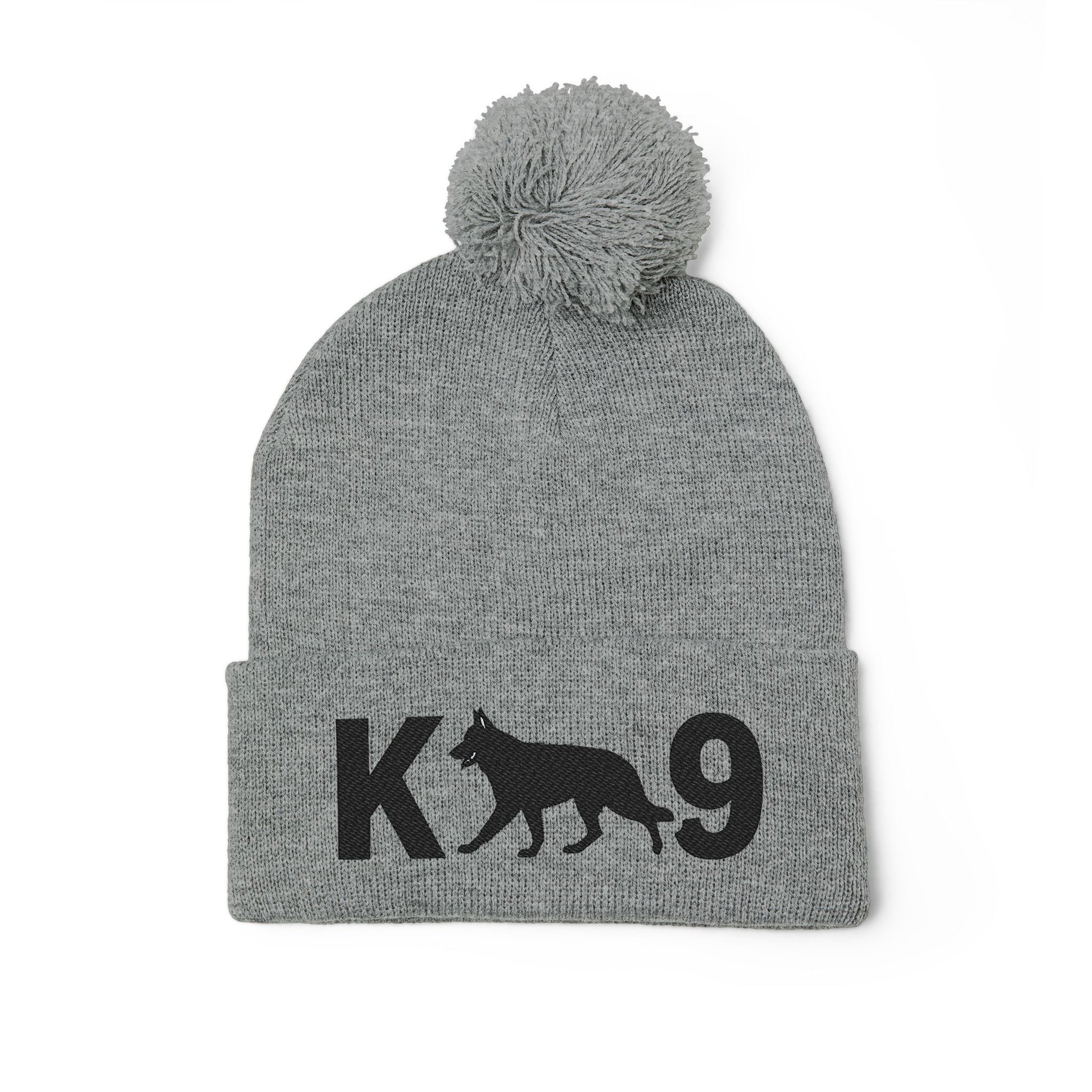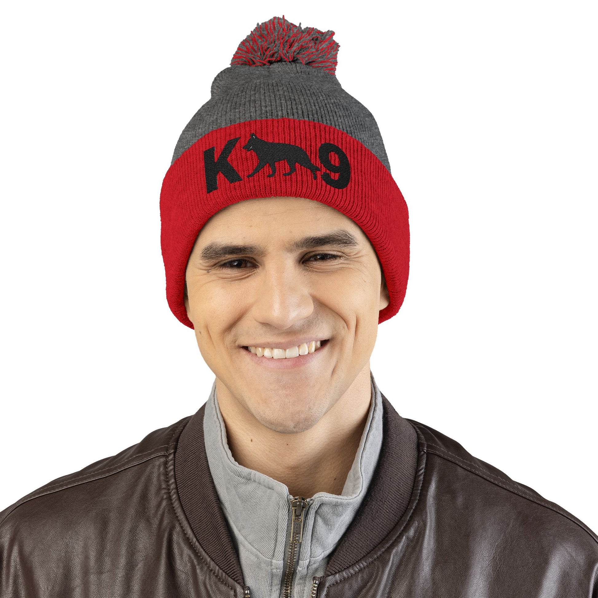 Embroidered K9 Pom-Pom Knit Cap - German Shepherd Design | Winter Beanie, Dog Lover Gift