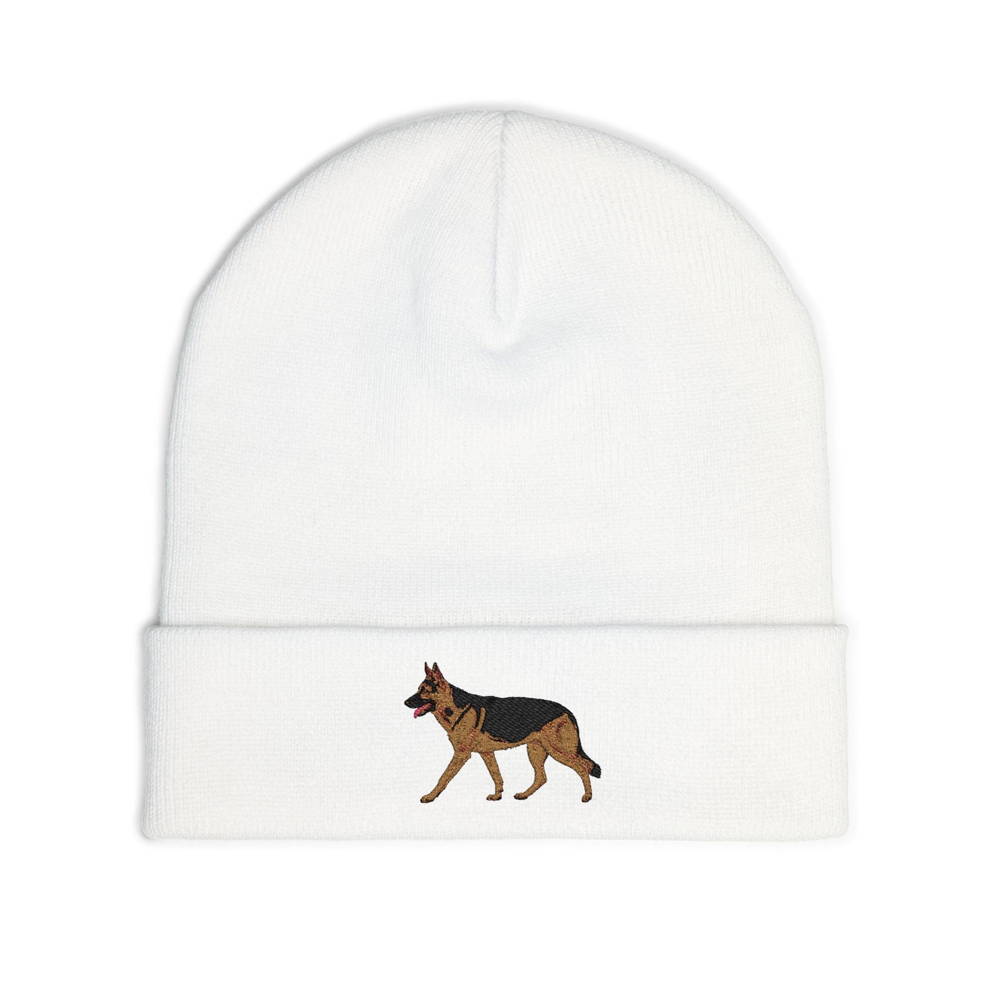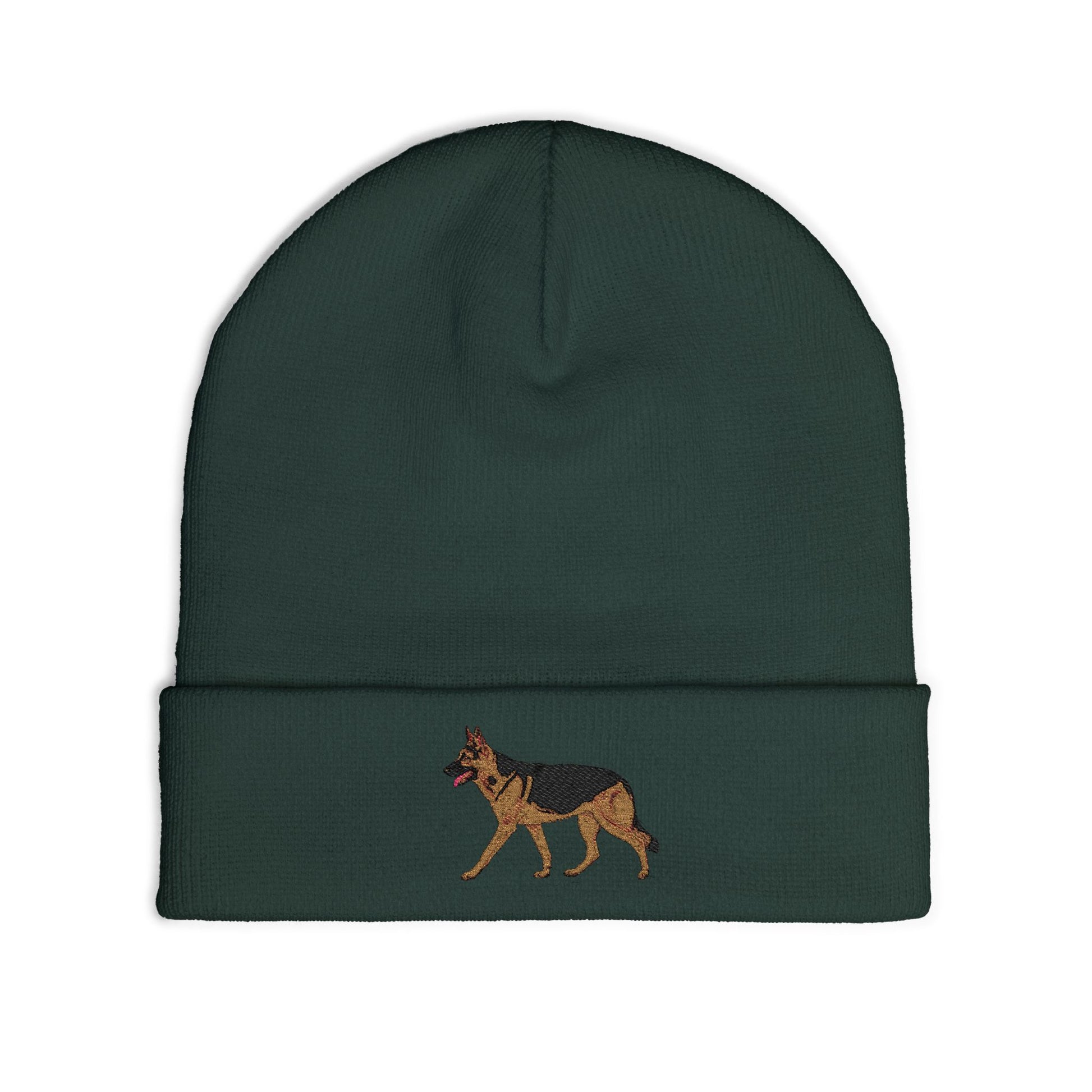 Embroidery Dog Knit Beanie | German Shepherd Design | Cozy Beanie for Cold Weather