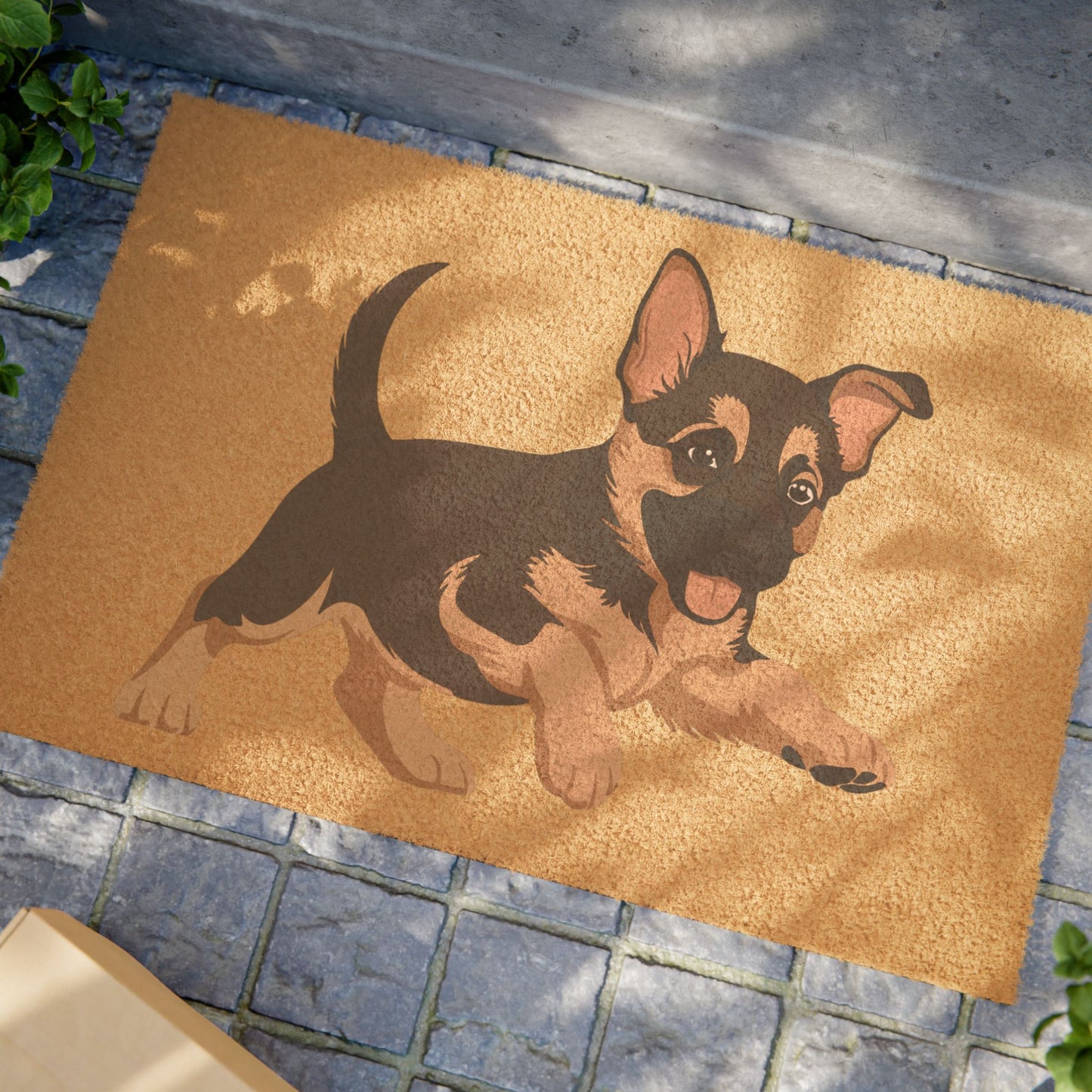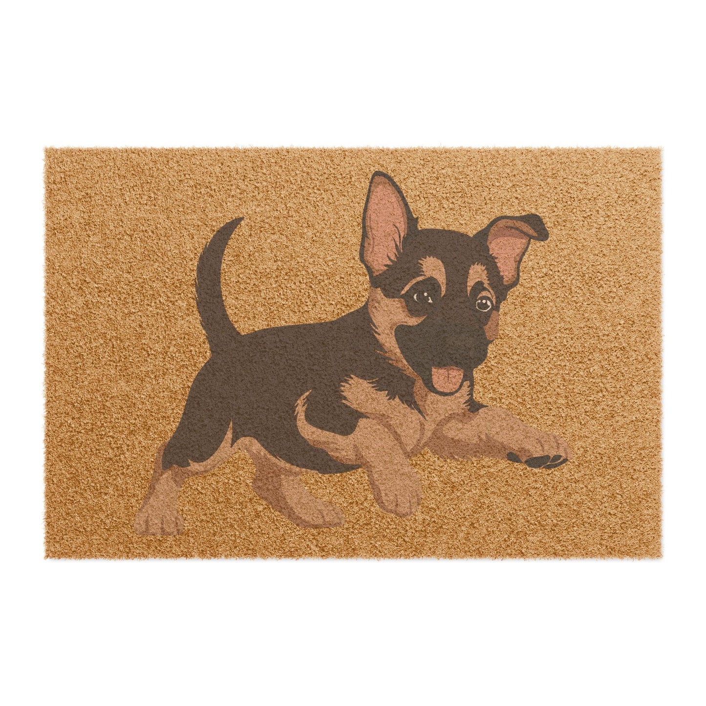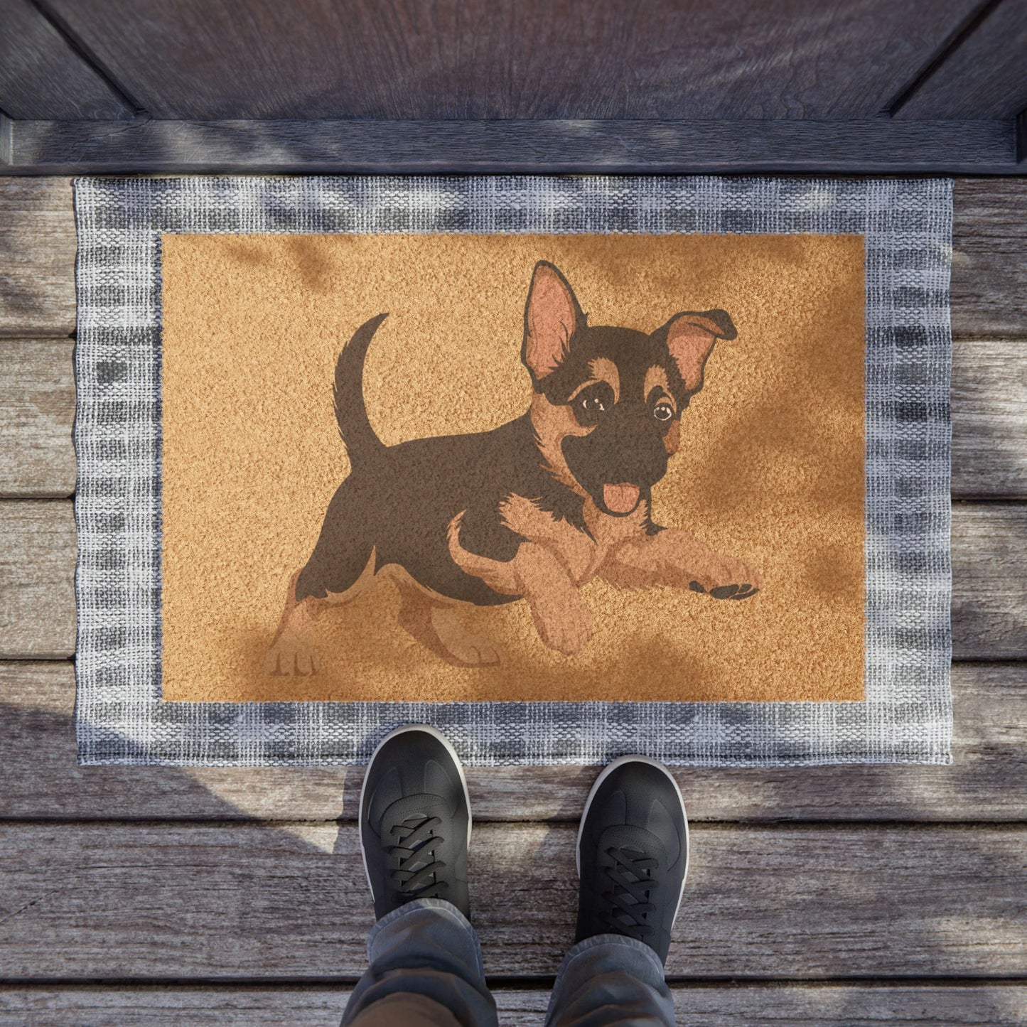 German Shepherd Doormat Featuring Graphic of a Cute Playing German Shepherd Puppy
