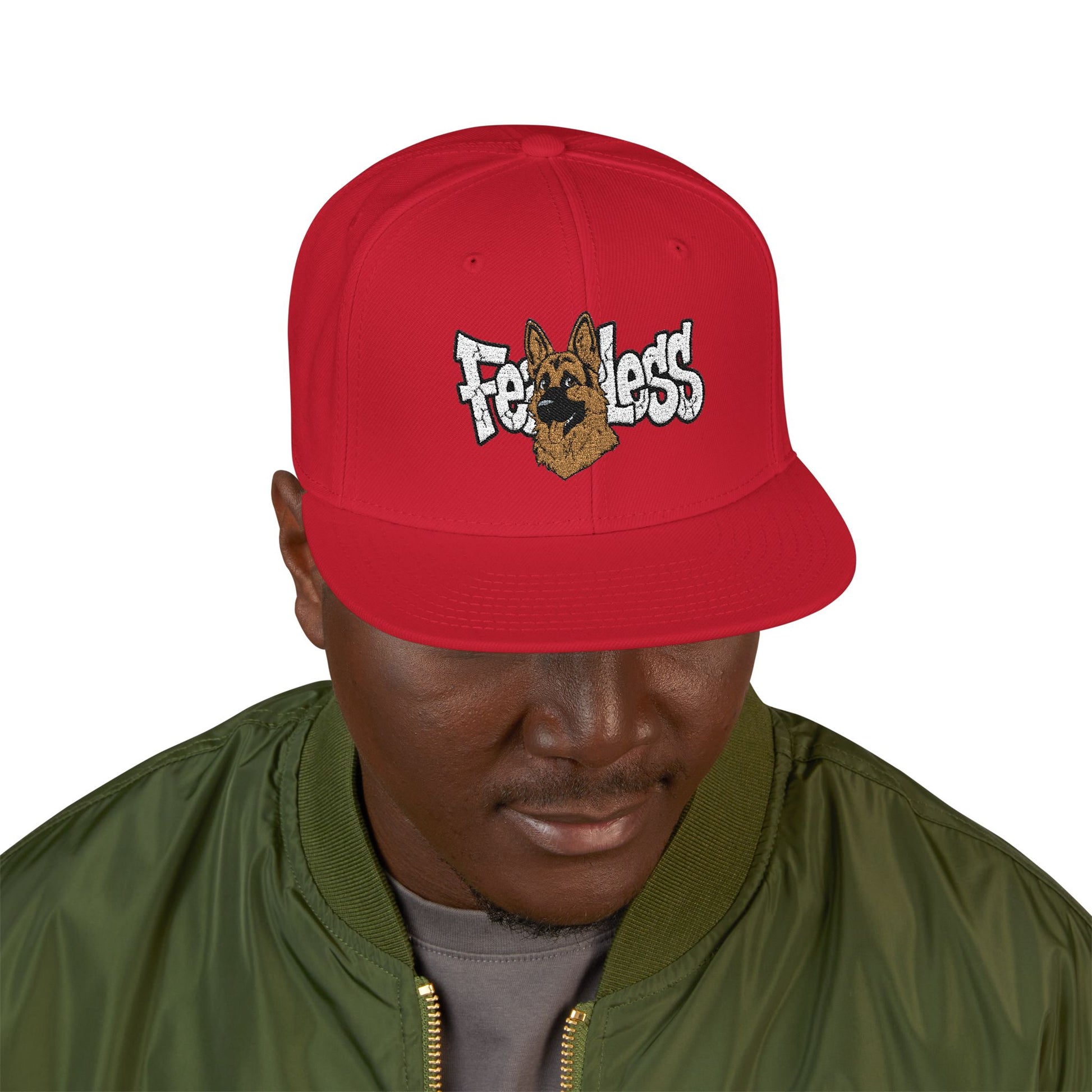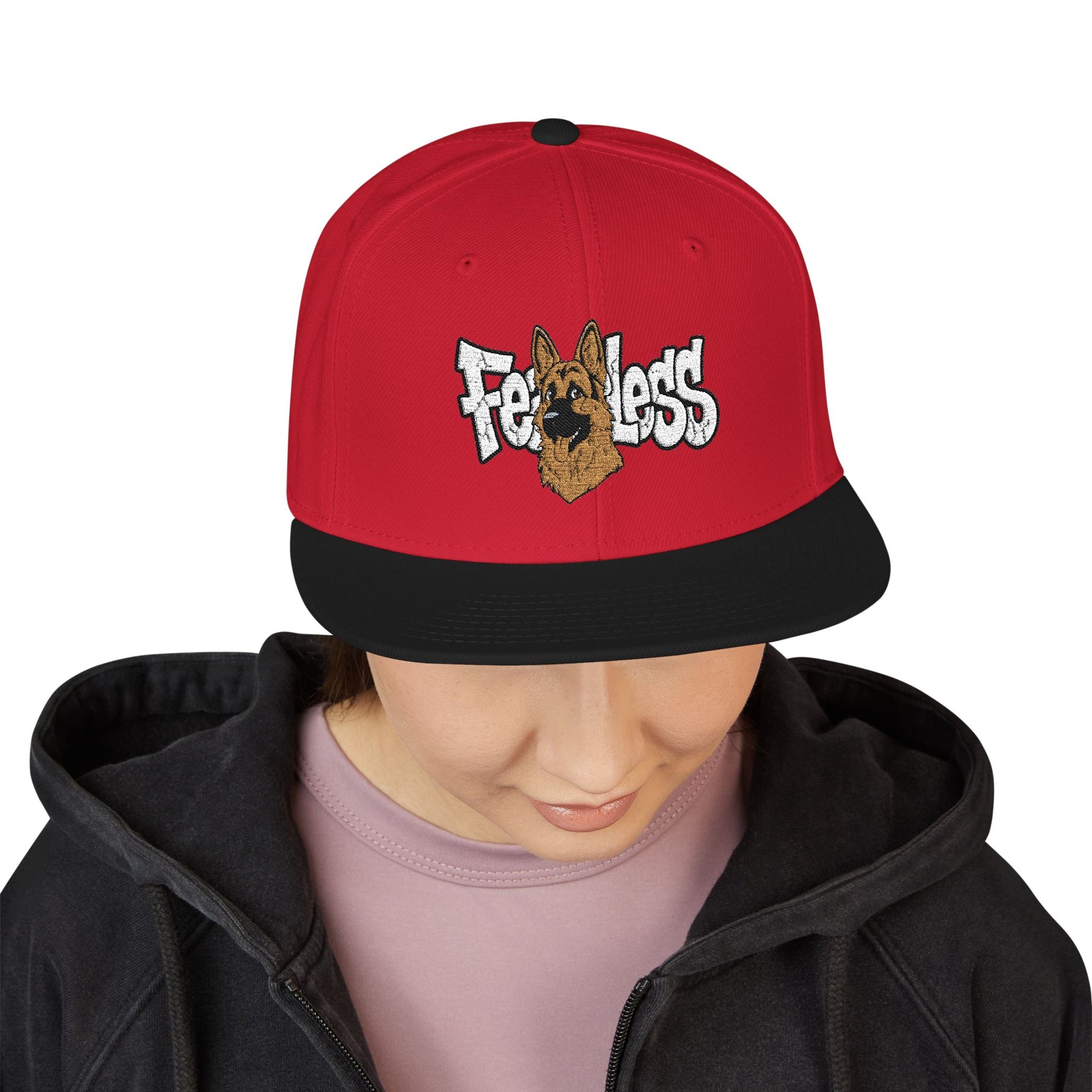 The German Shepherd Embroidered Snapback Hat - Fearless, is a stylish and well-crafted cap perfect for German Shepherd enthusiasts. Made from a durable blend of 85% acrylic and 15% wool, it offers both comfort and resilience.