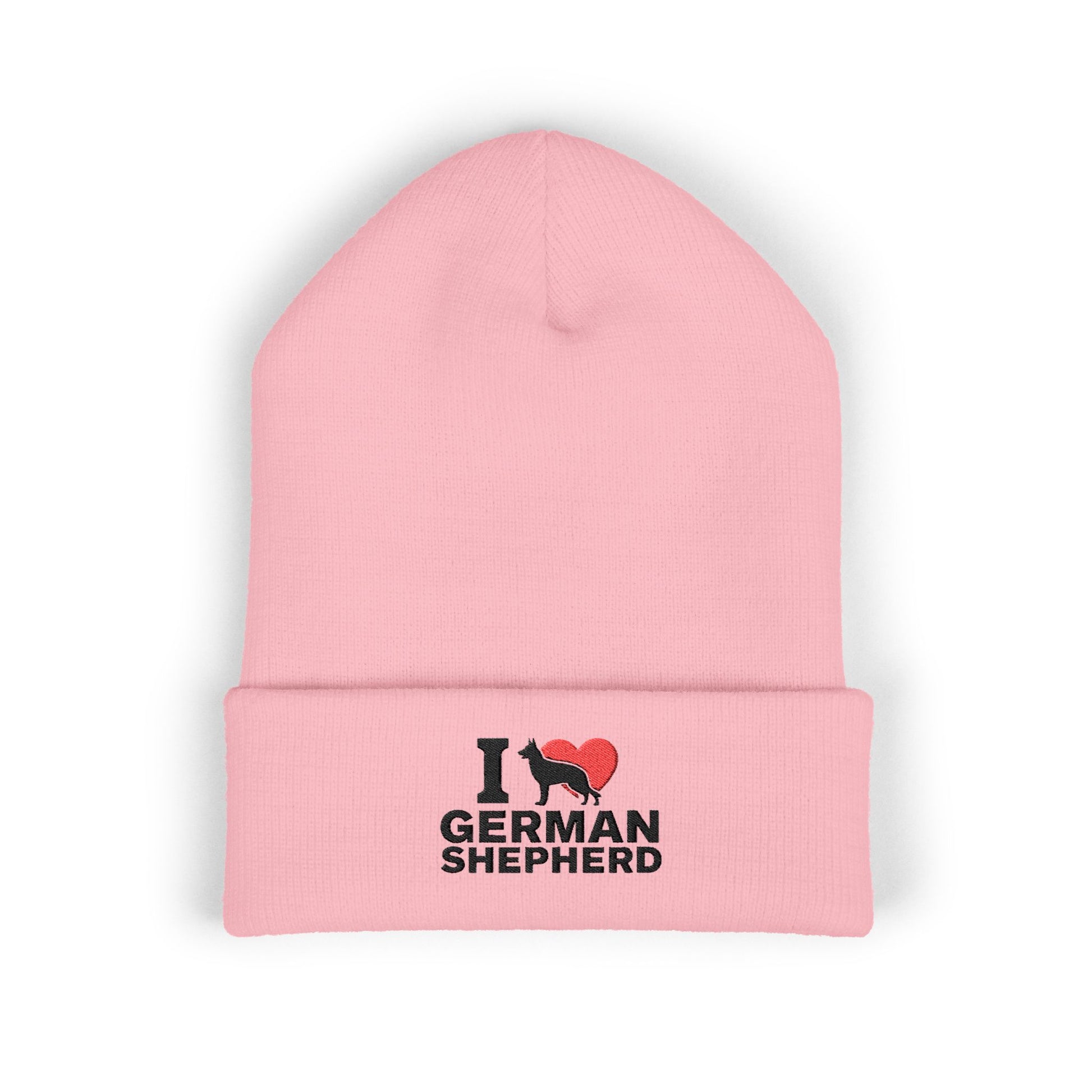 I Love German Shepherd Embroidered Classic Cuffed Beanie