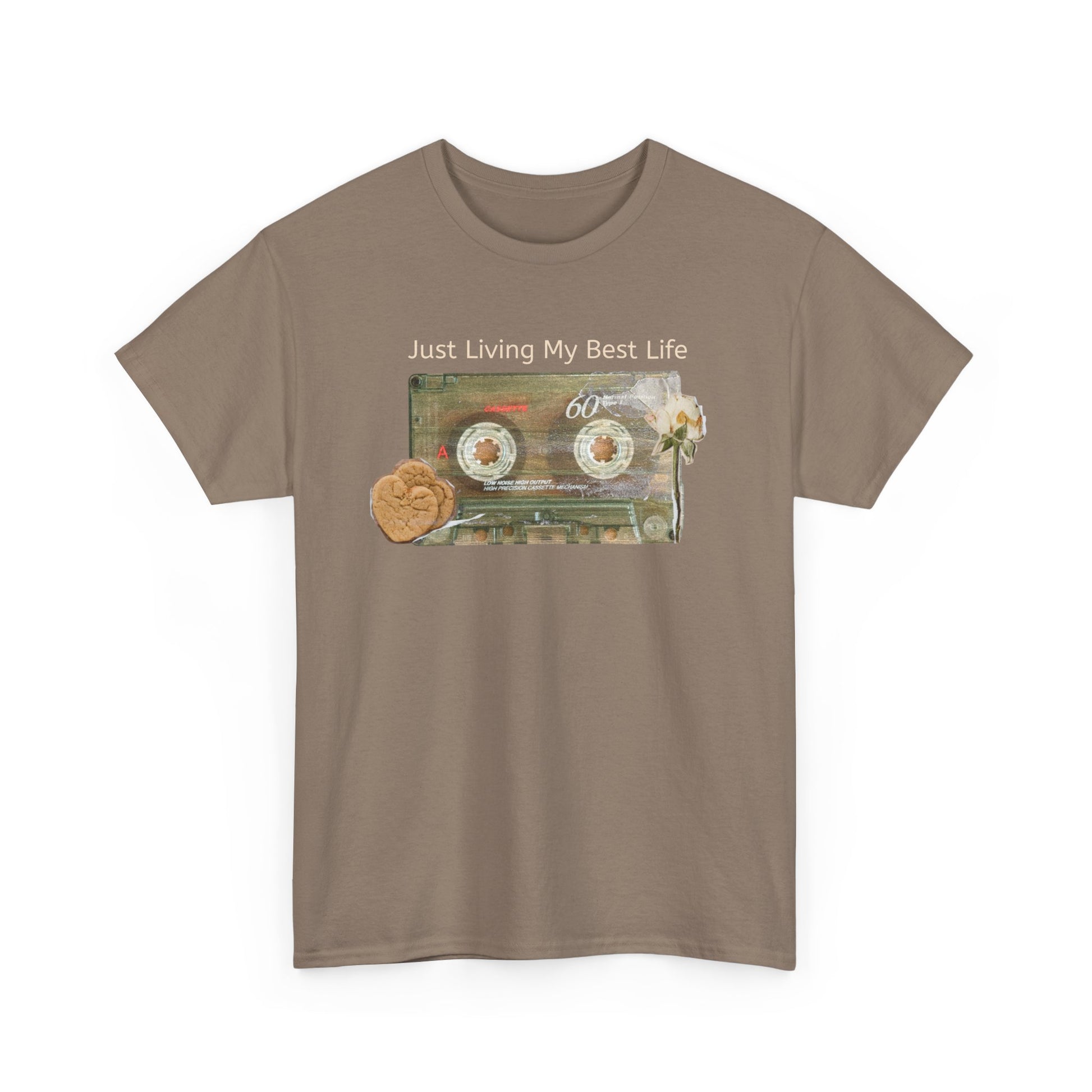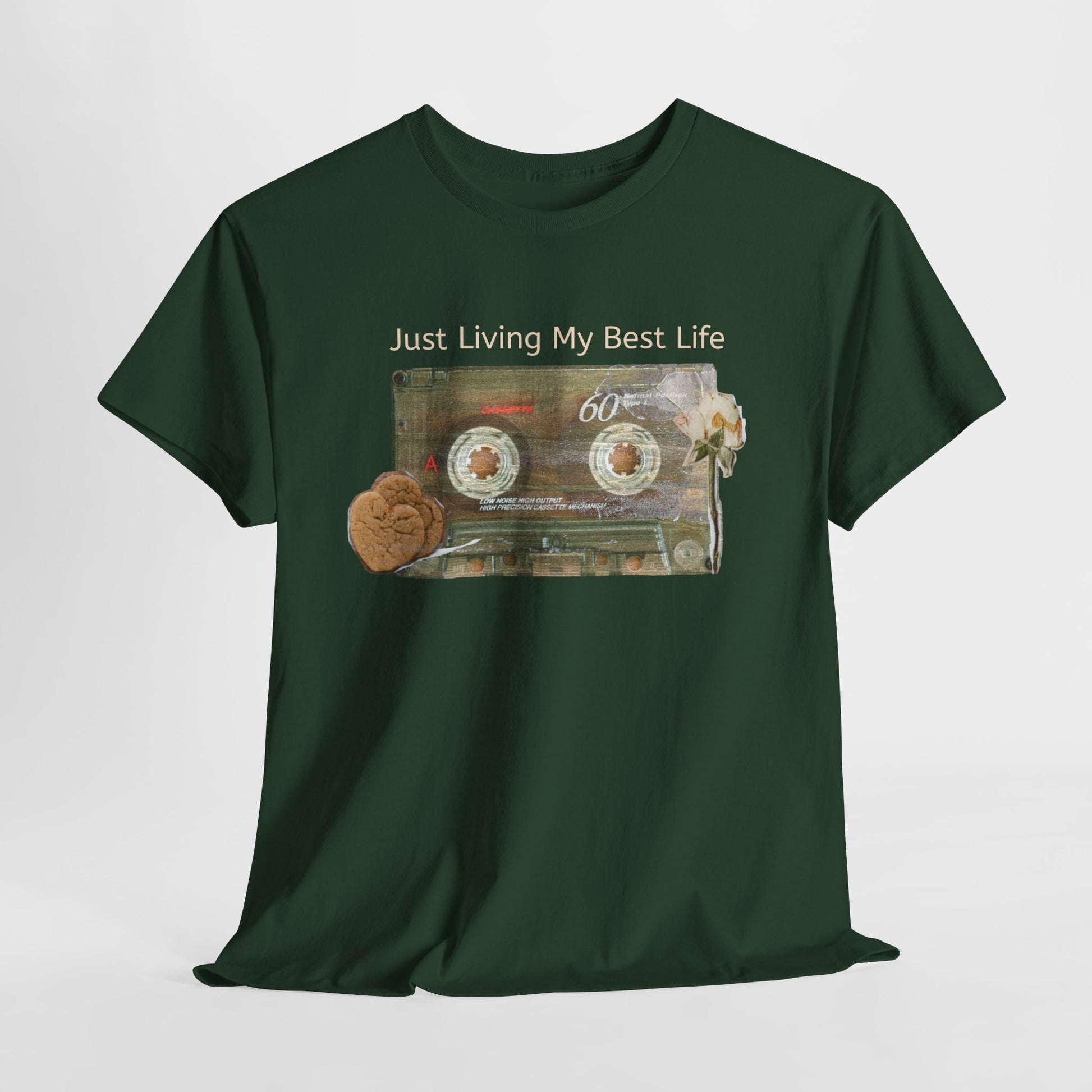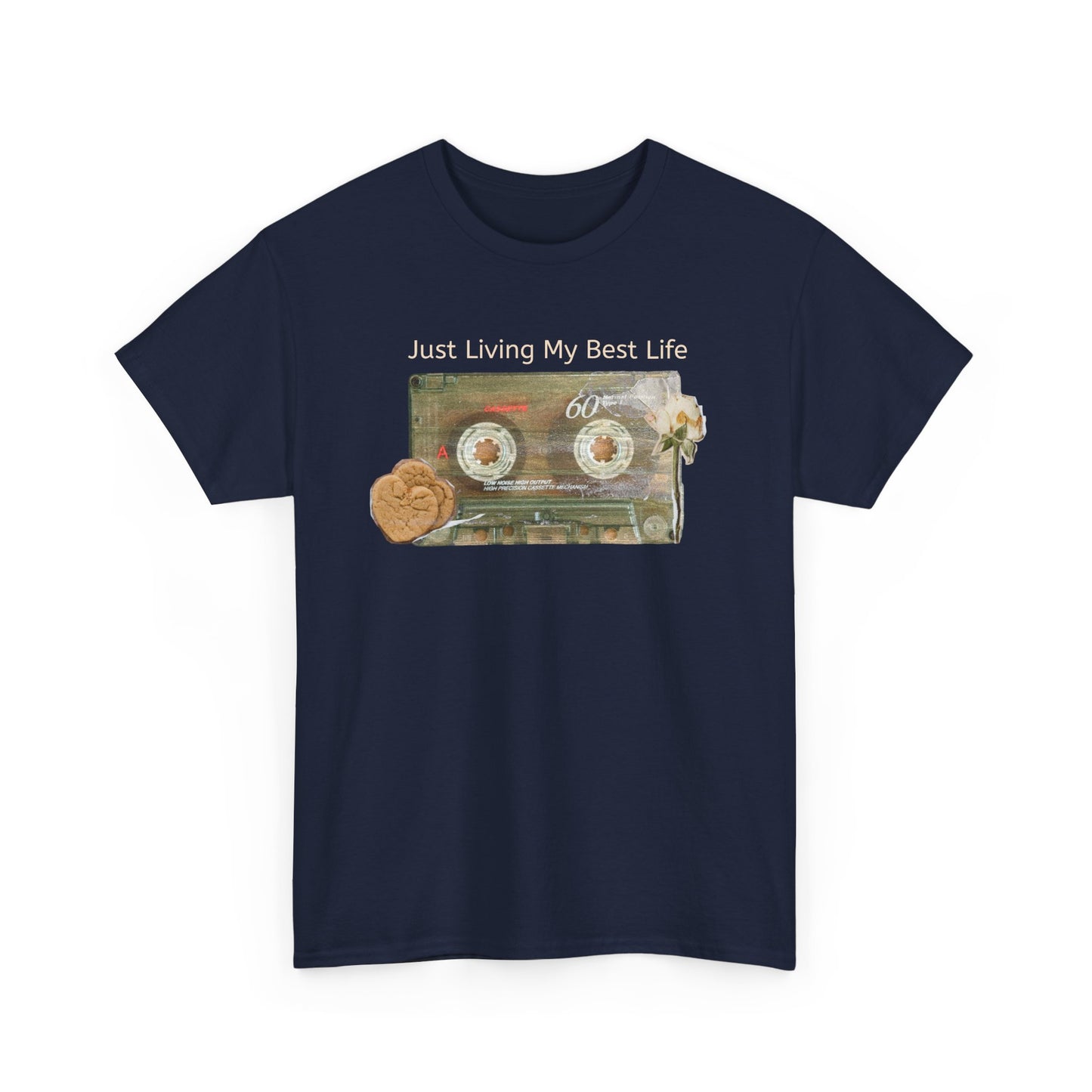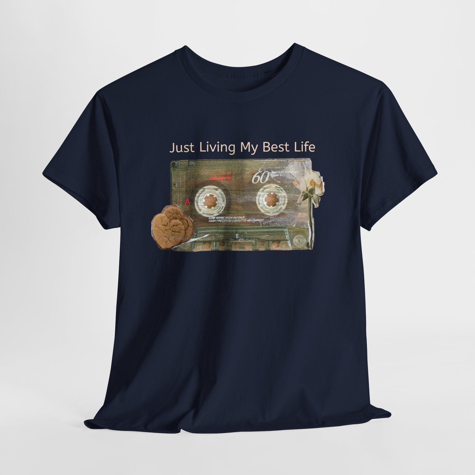 Just Living My Best Life Tee, Vintage Cassette T-Shirt, Casual Wear, Gift for Friends, Music Lover's Apparel