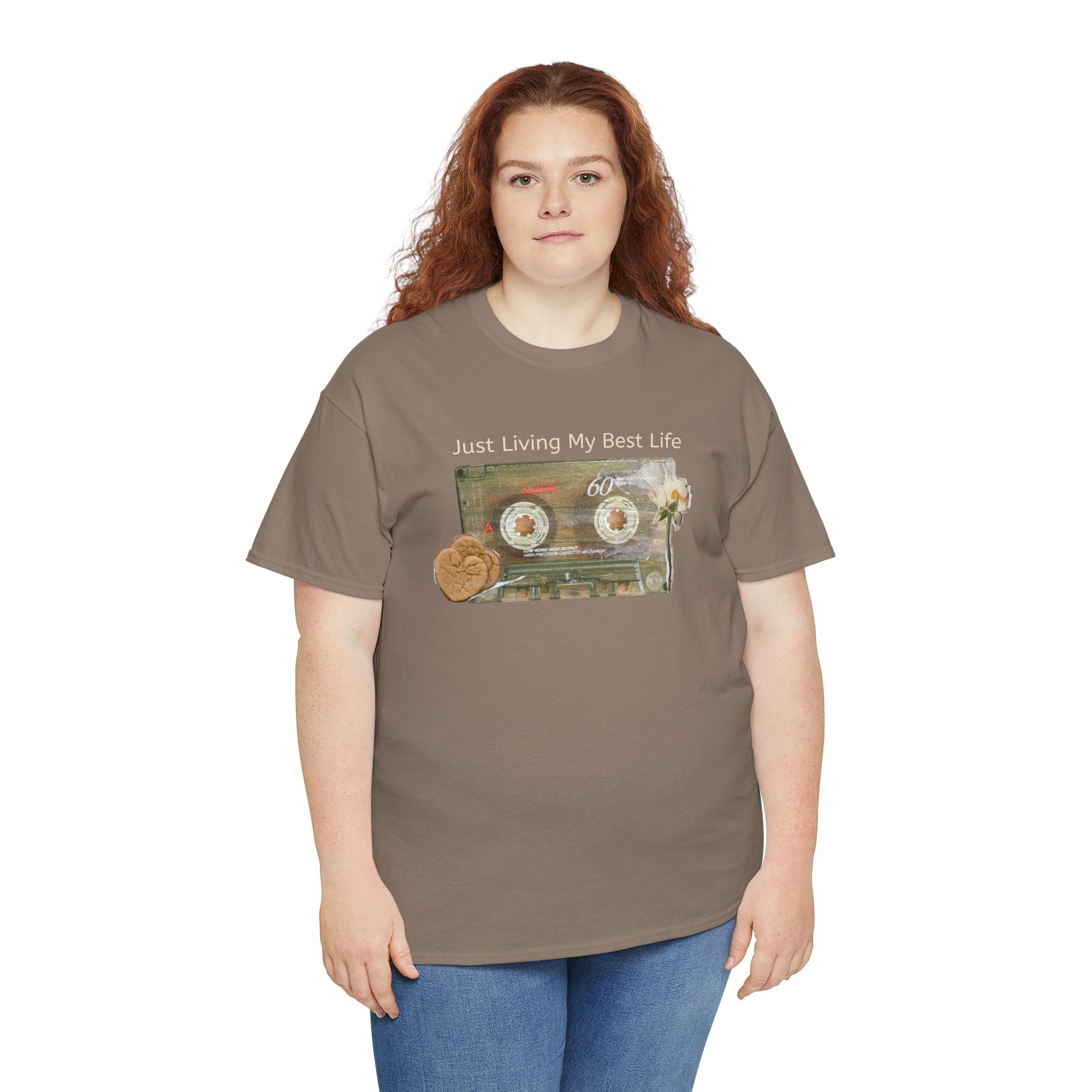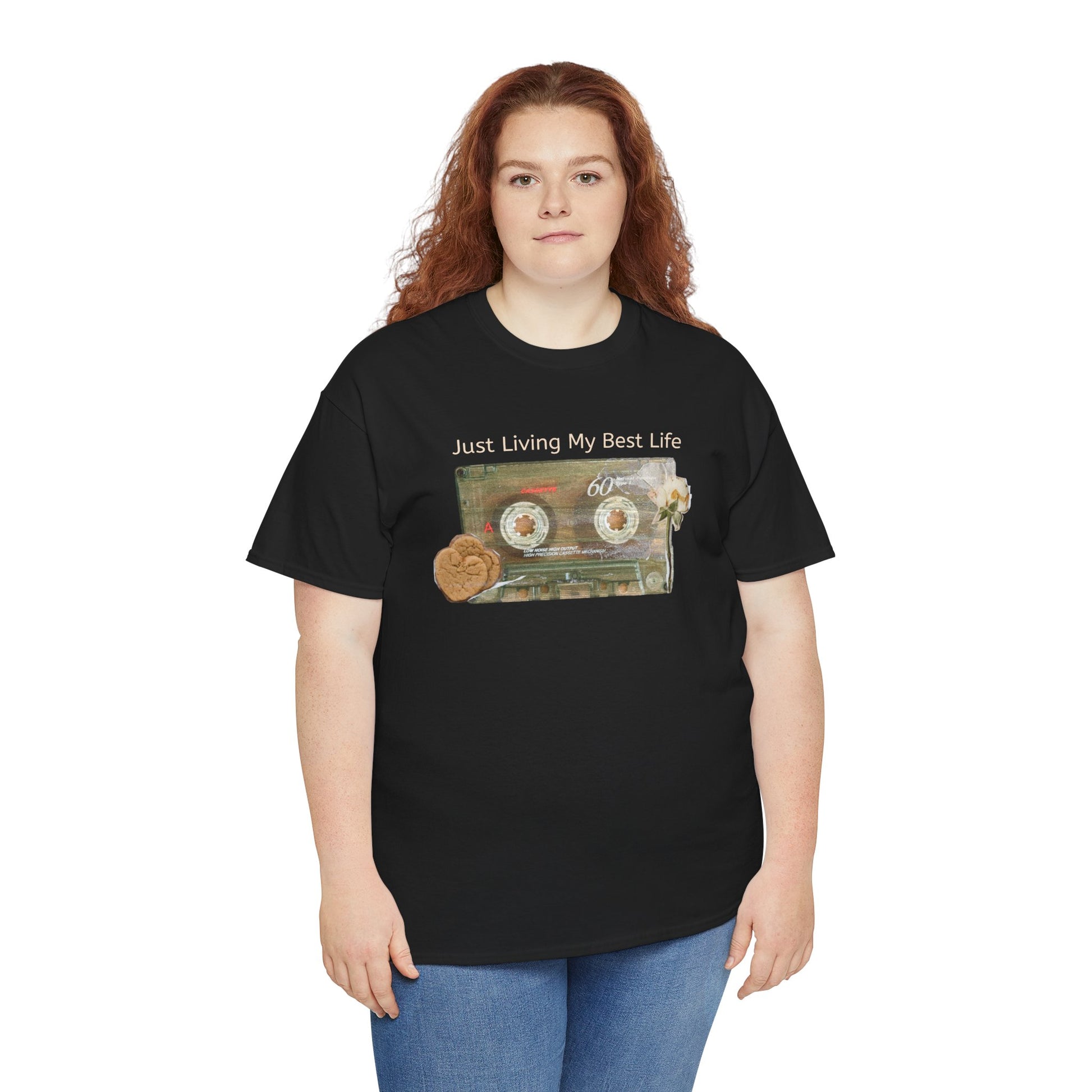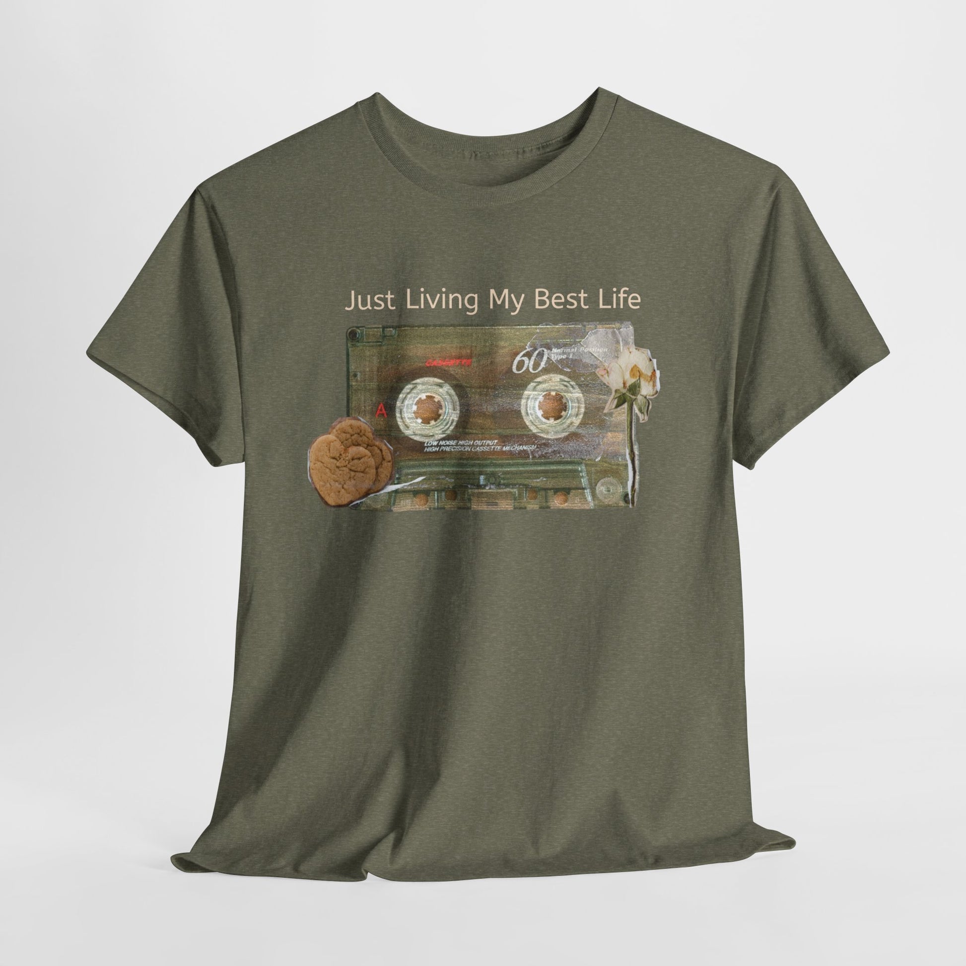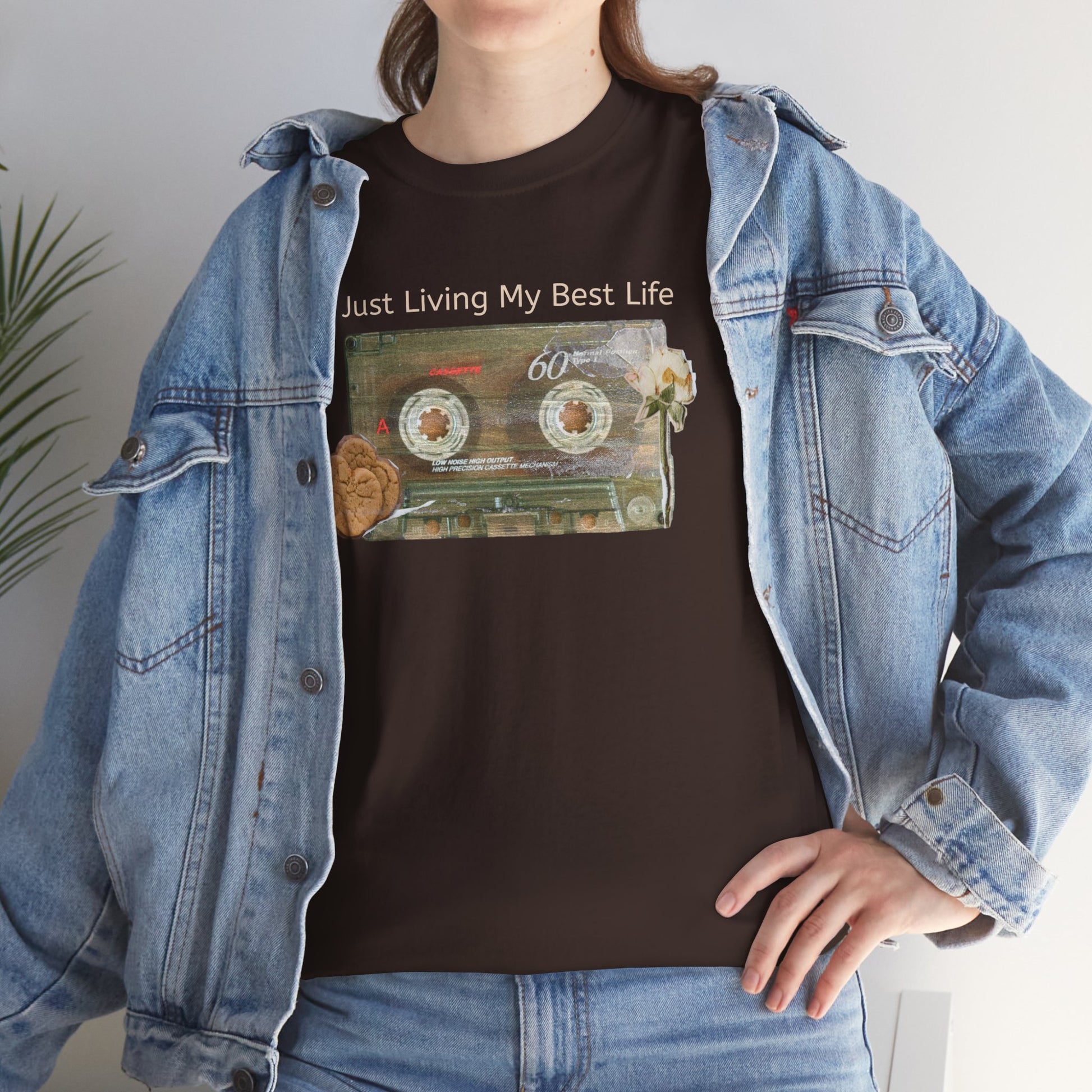 Just Living My Best Life Tee, Vintage Cassette T-Shirt, Casual Wear, Gift for Friends, Music Lover's Apparel