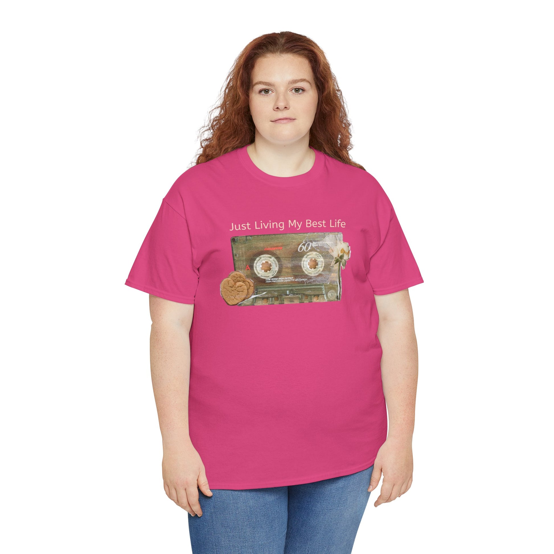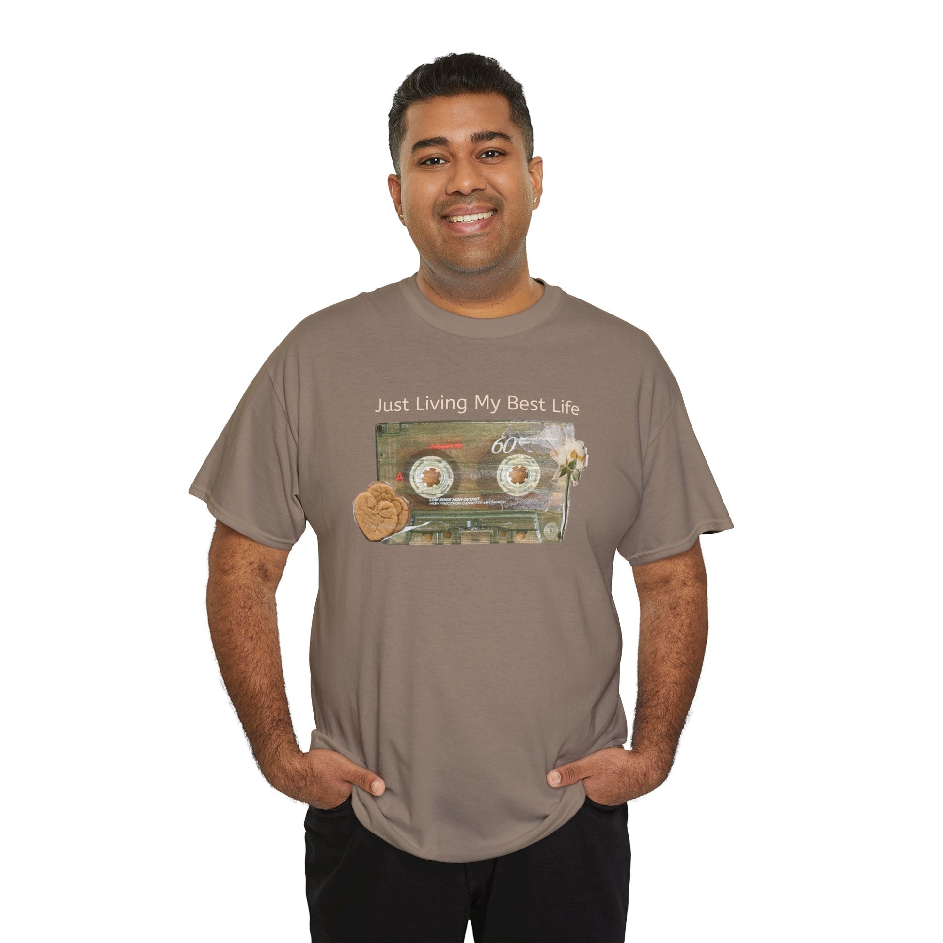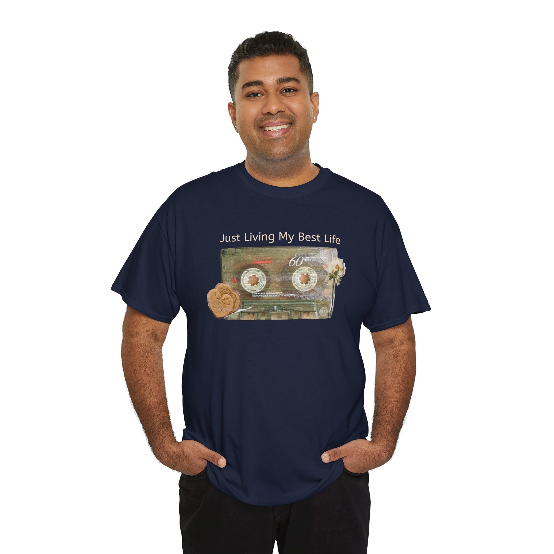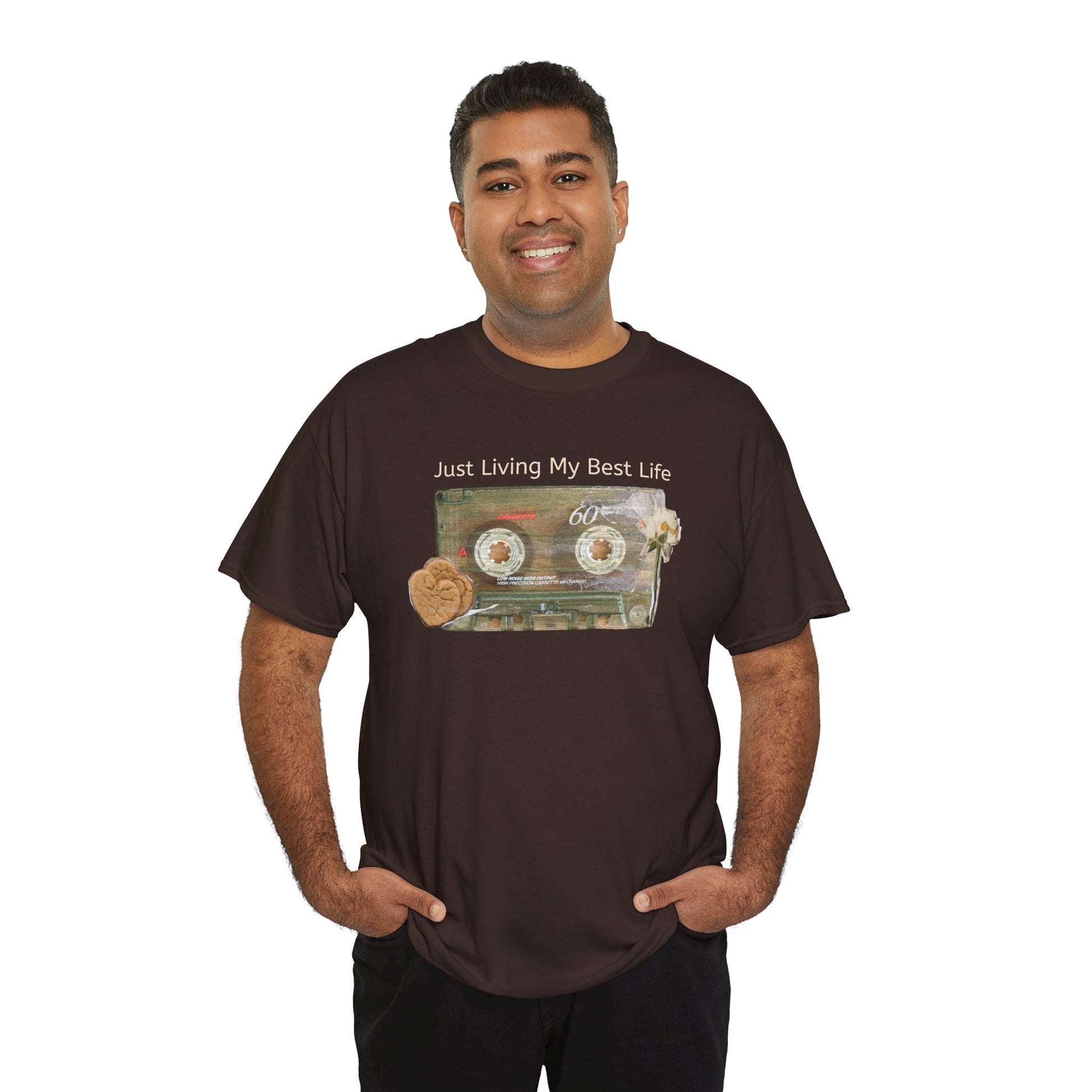 Just Living My Best Life Tee, Vintage Cassette T-Shirt, Casual Wear, Gift for Friends, Music Lover's Apparel