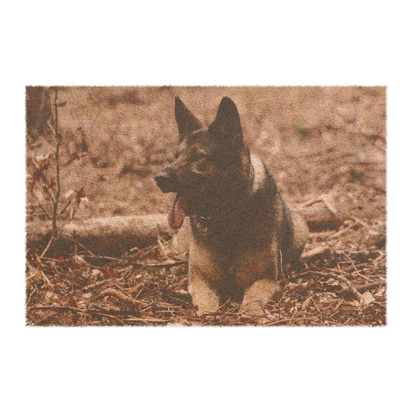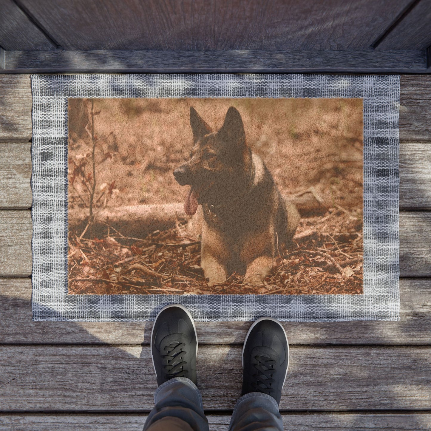 Outdoor Dog Lover Doormat Featuring a Working Line German Shepherd Resting on the Ground