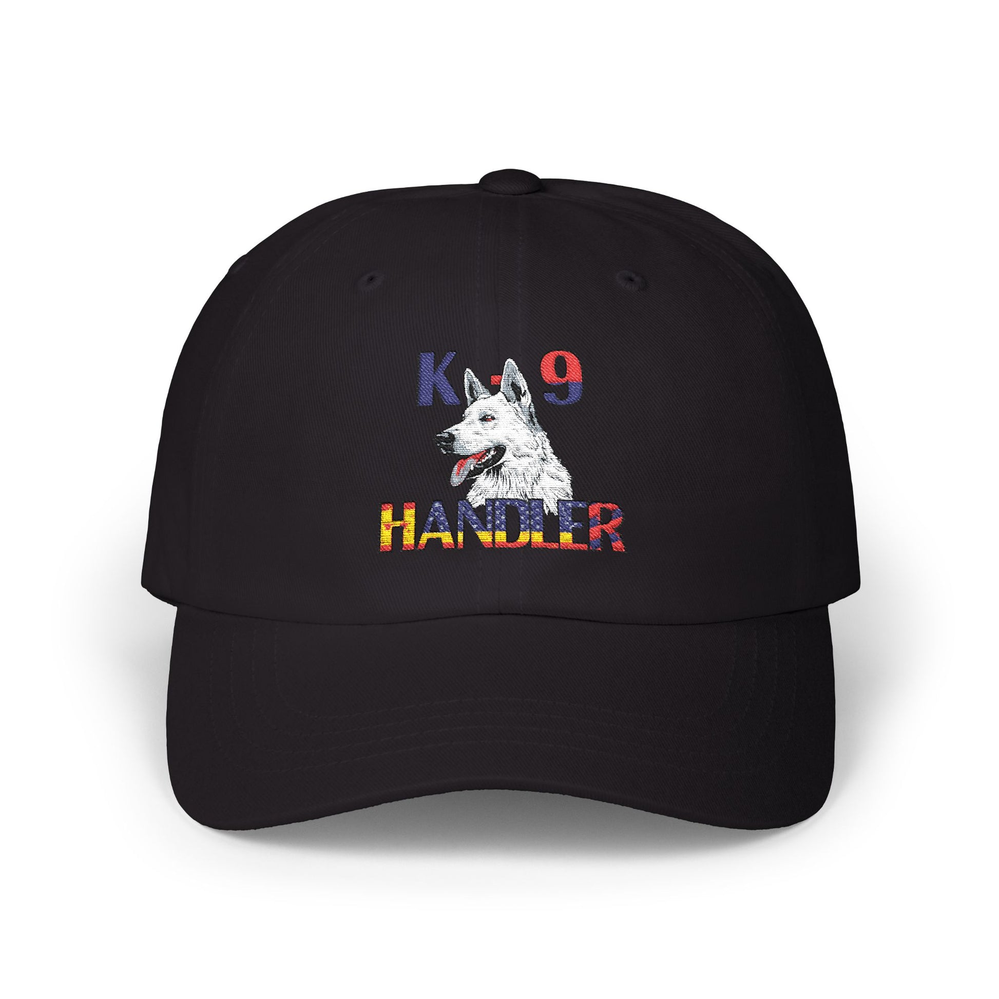 Embroidered Police Themed K9 Handler Classic Dad Cap Featuring a White German Shepherd