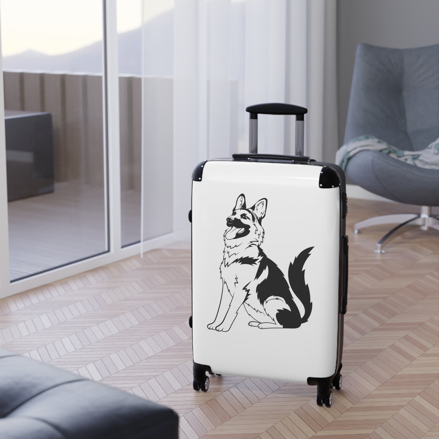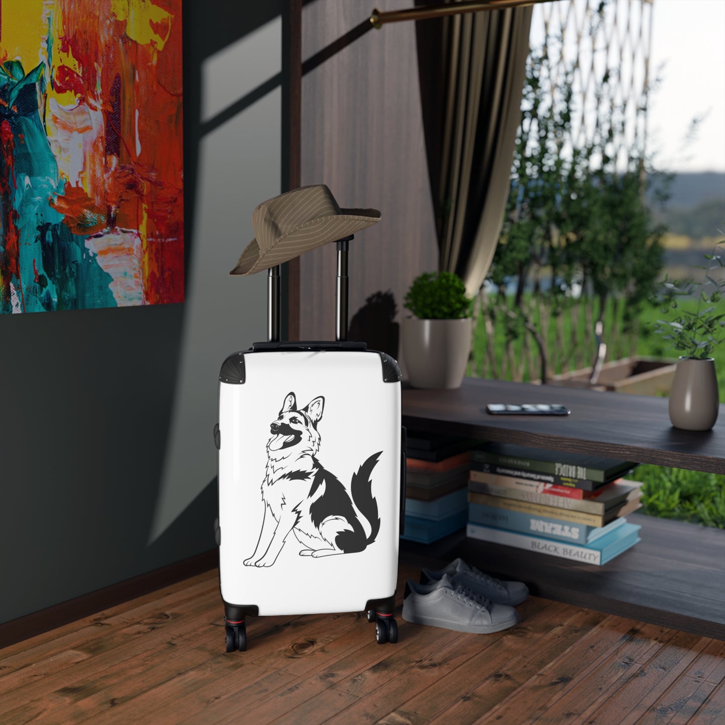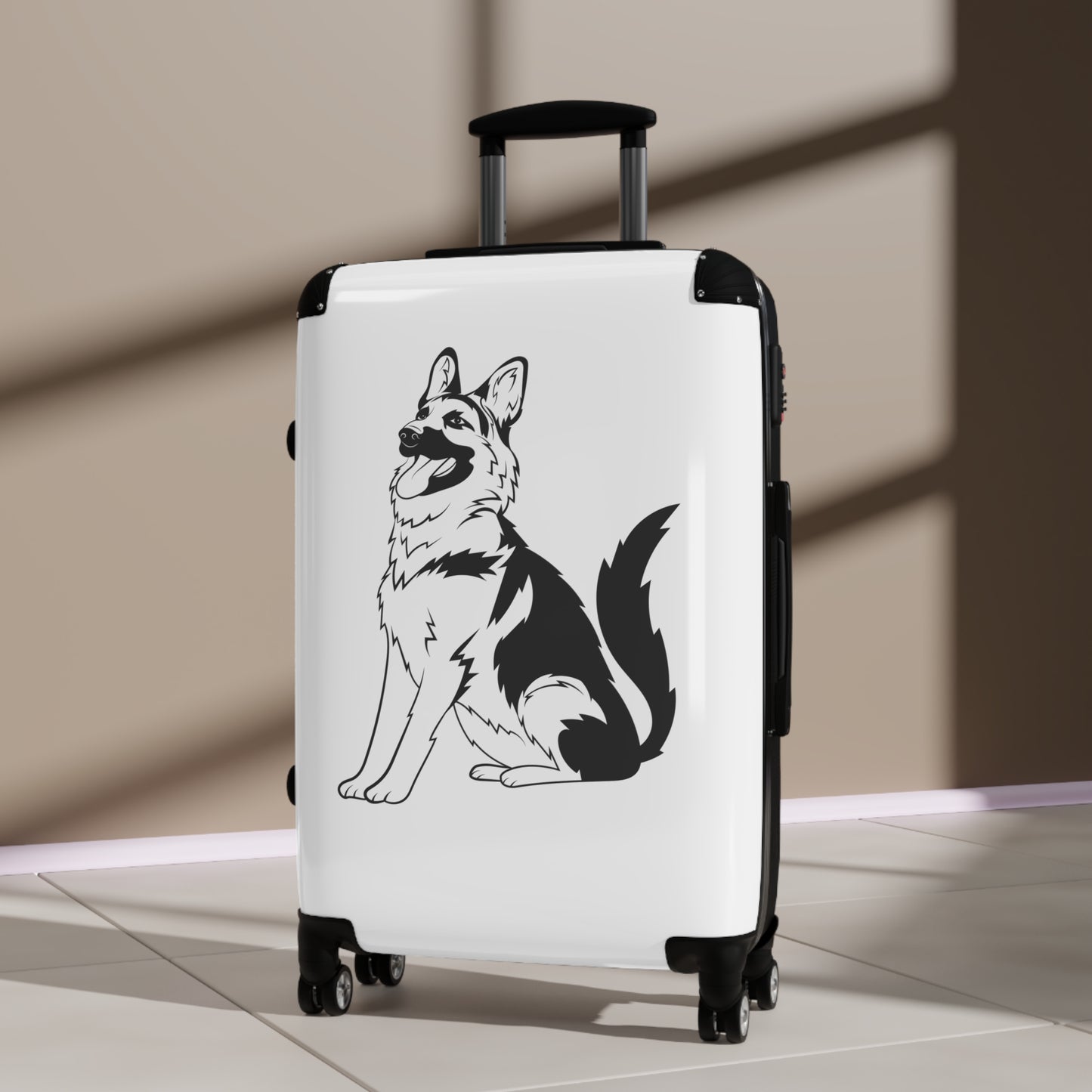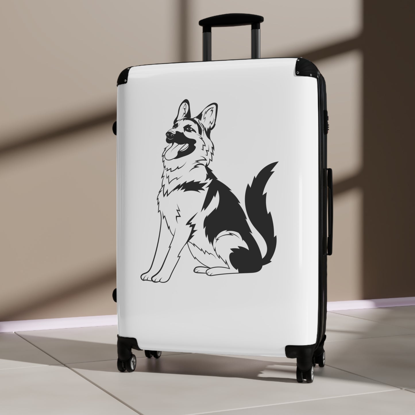 Travel Suitcase with Cool Dog Design - A German Shepherd Sloppily Sitting
