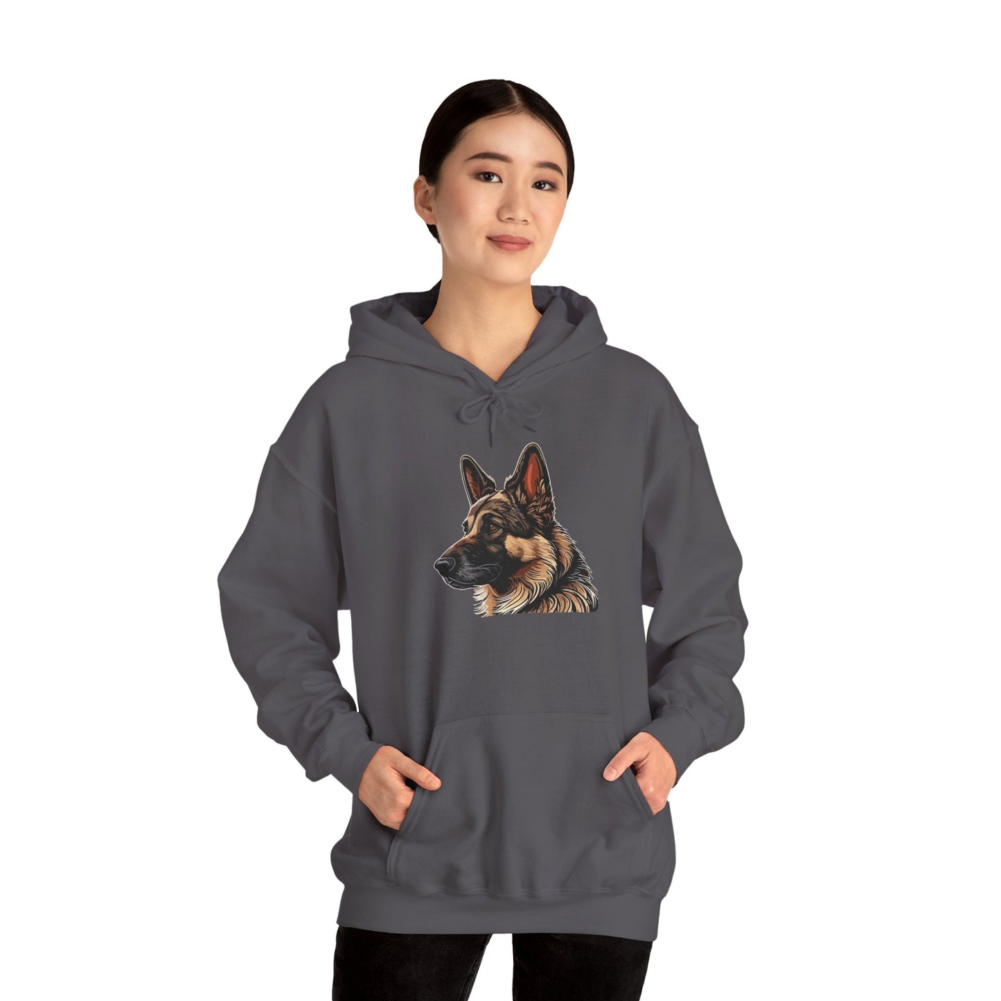Celebrate the bold and loyal spirit of the Black and Tan German Shepherd with this Unisex Dog Lover Hoodie, featuring a striking close-up graphic of this iconic breed. Designed for both style and practicality, this hoodie is crafted from a premium blend of 50% cotton and 50% polyester, offering a soft feel and lasting durability. The medium-heavy fabric (8.0 oz/yd² or 271 g/m²) ensures warmth and coziness, making it perfect for casual outings or relaxed moments. Thoughtfully designed with a spacious kangaroo pocket for convenience, an adjustable drawstring hood for a personalized fit, and a seamless design for a sleek, modern look, this hoodie is available in multiple colors and sizes. Whether you’re a proud German Shepherd owner or simply admire the strength and intelligence of this incredible breed, this hoodie is a stylish and comfortable way to showcase your passion!