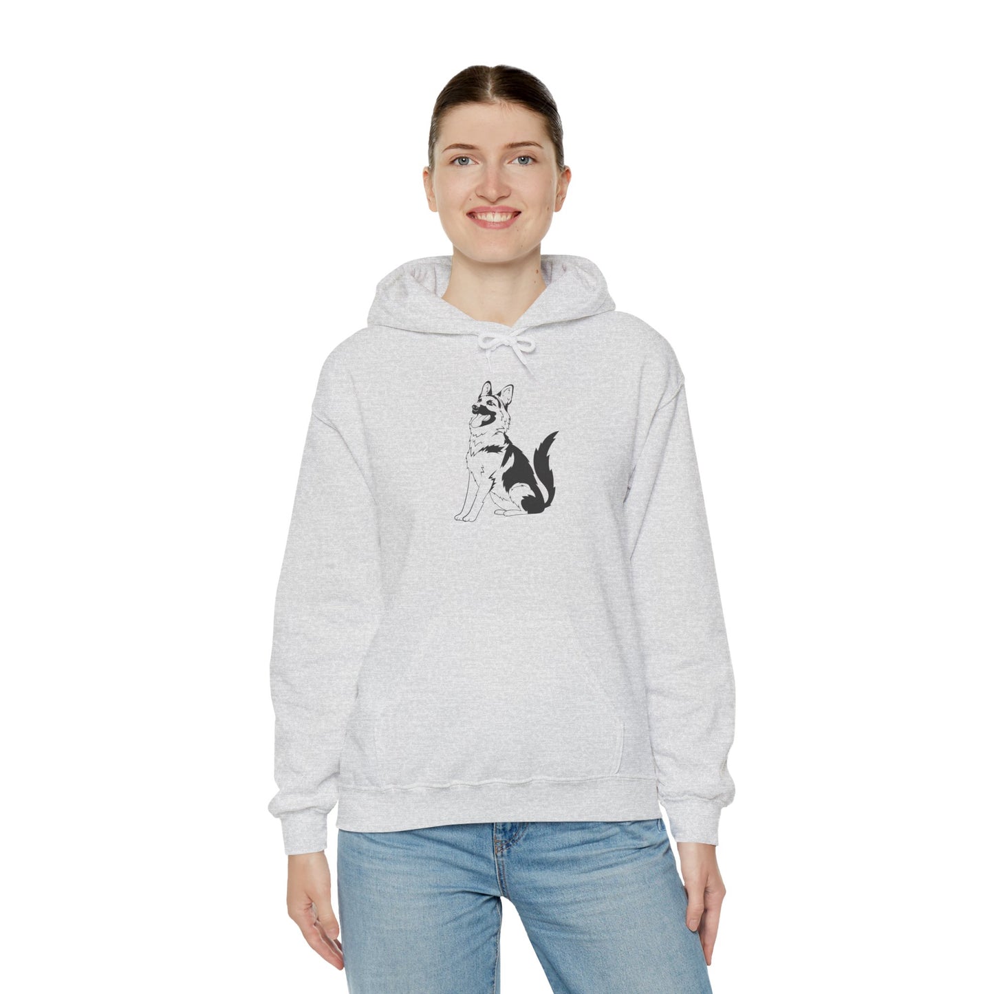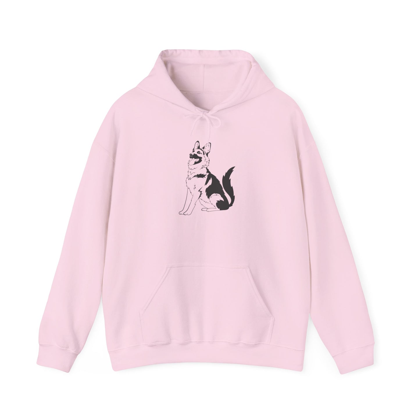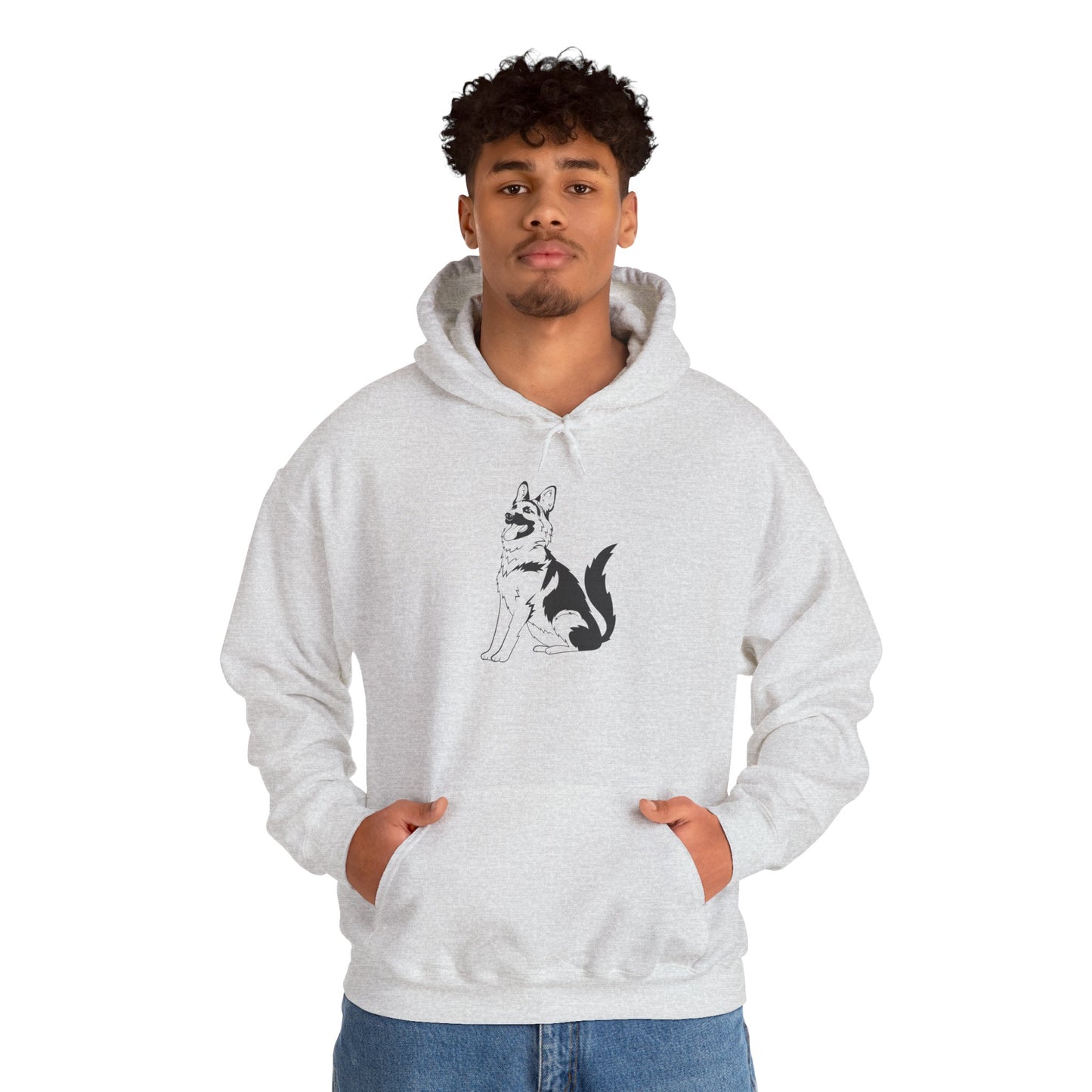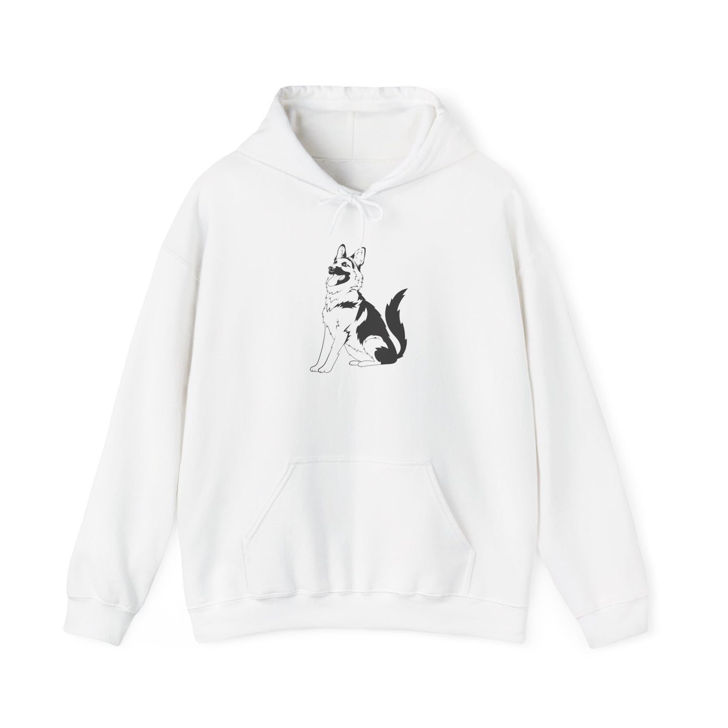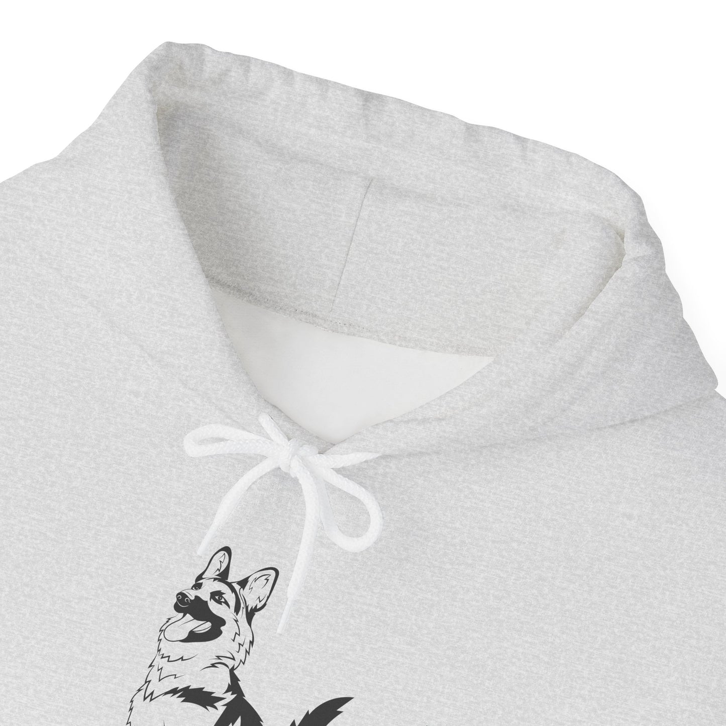 Unisex Dog Lover Hoodie With a Graphic of Black and Transparent German Shepherd Sloppily Sitting