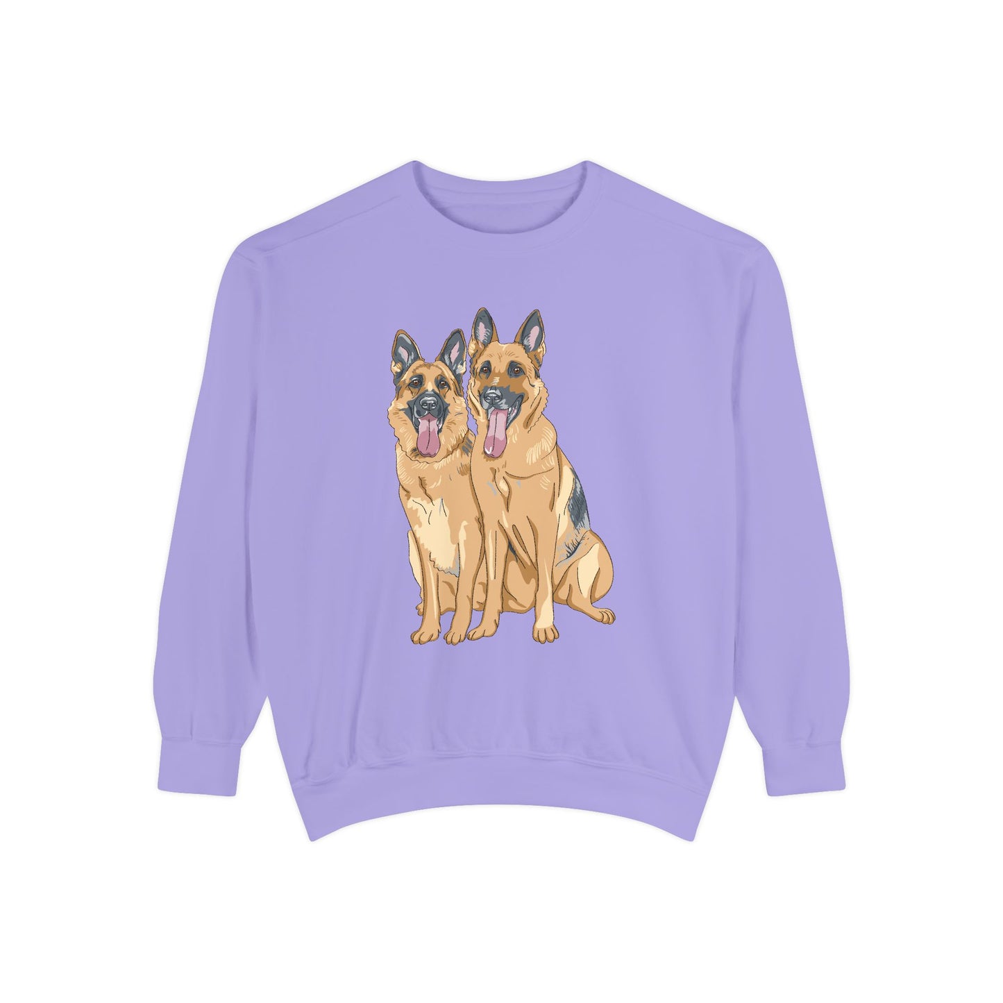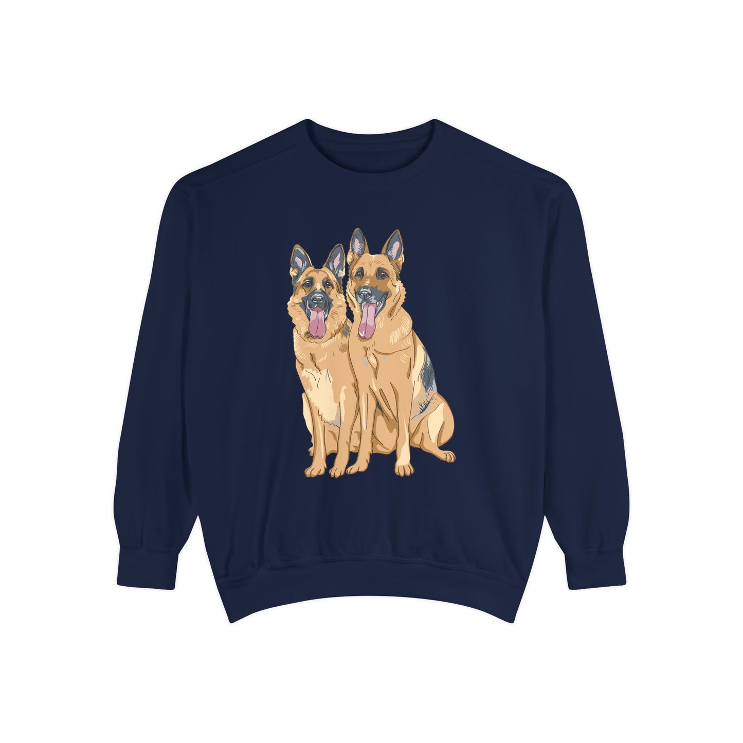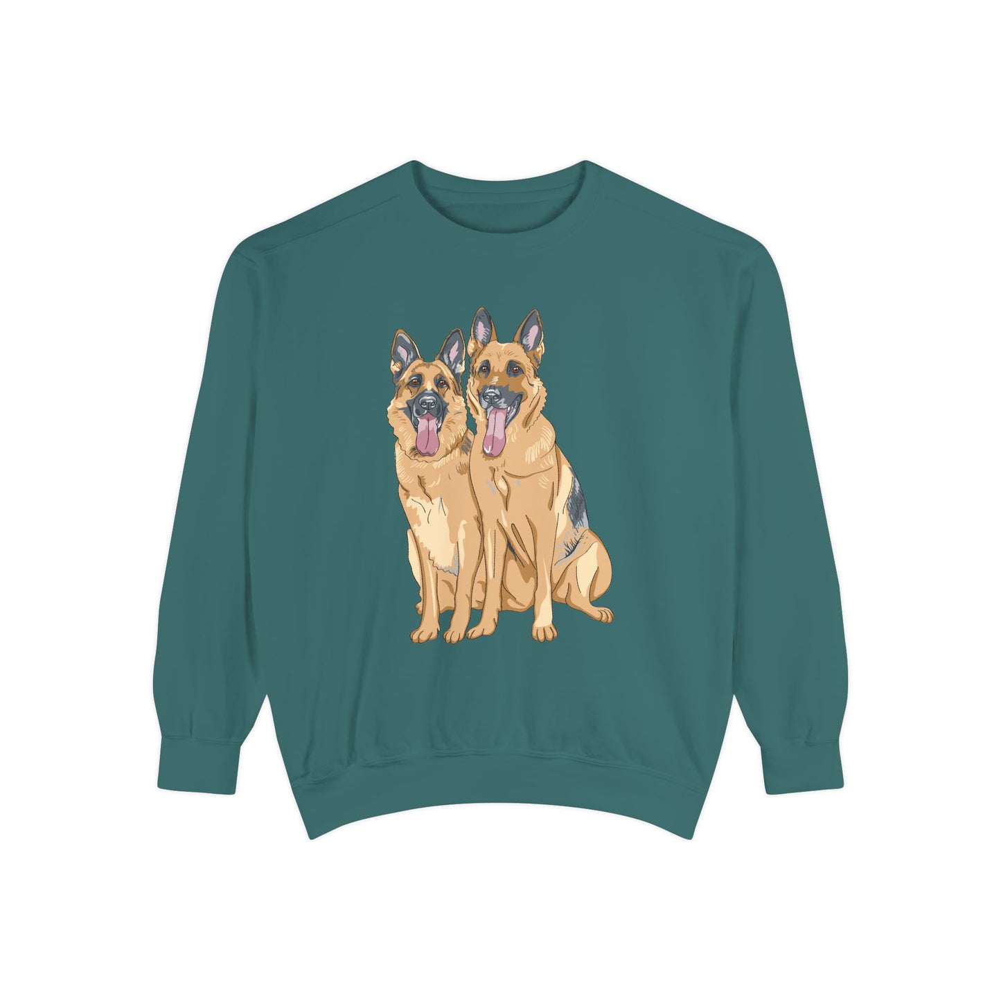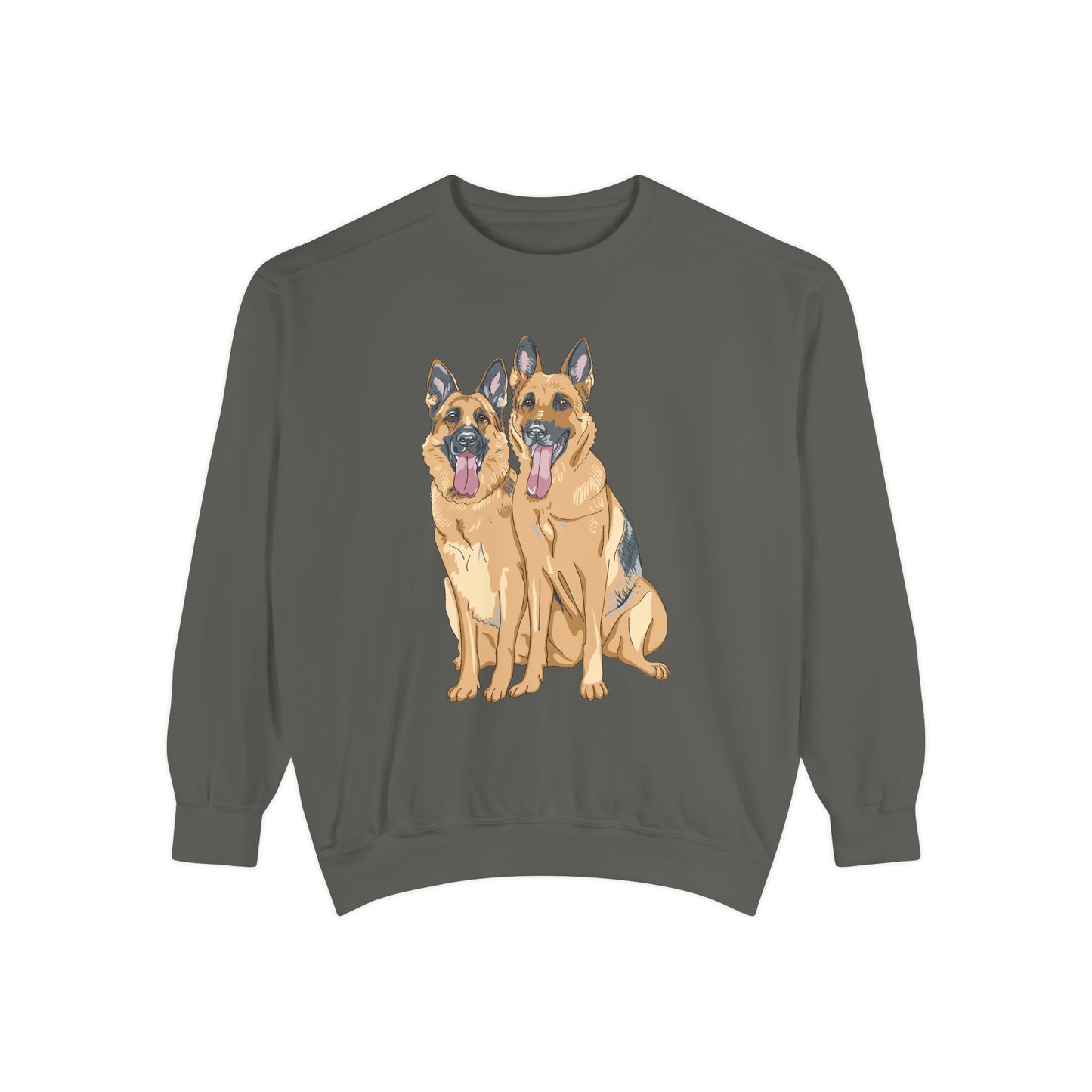 Unisex Dog Lover Sweatshirt With Graphic of Two German Shepherd Sloppily Sitting