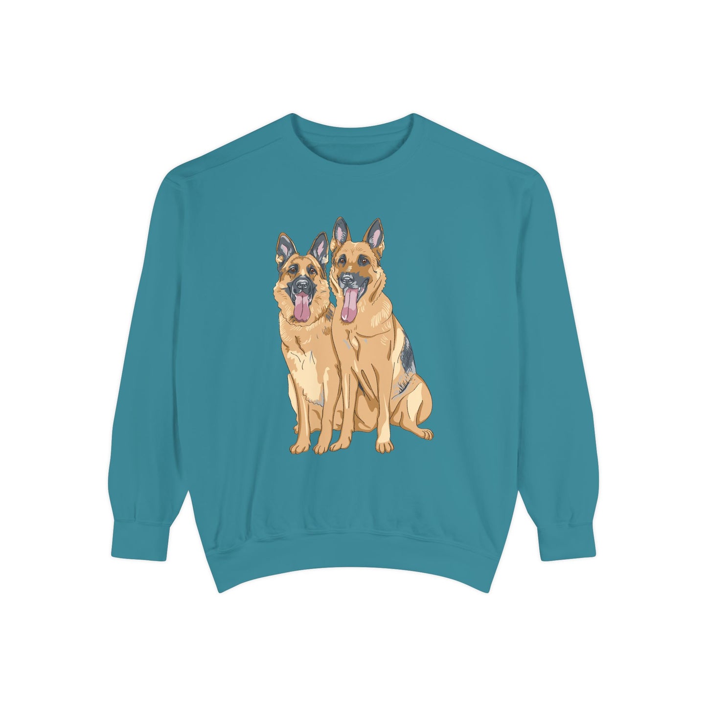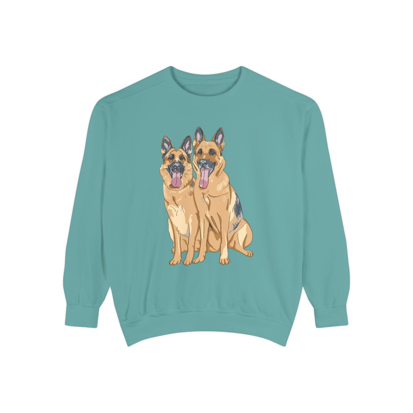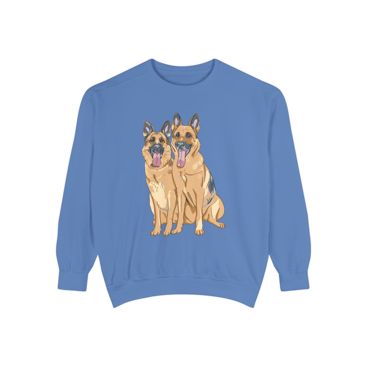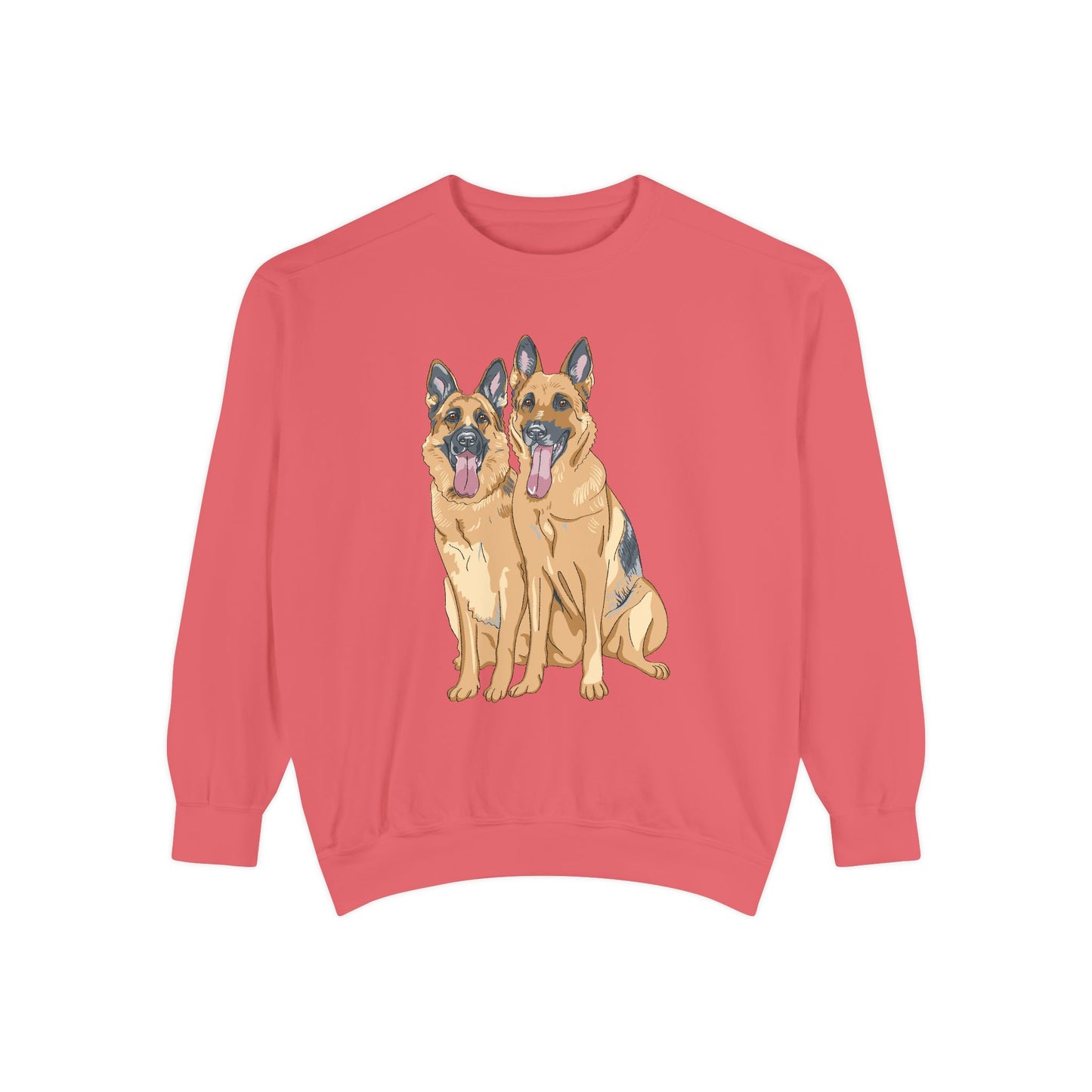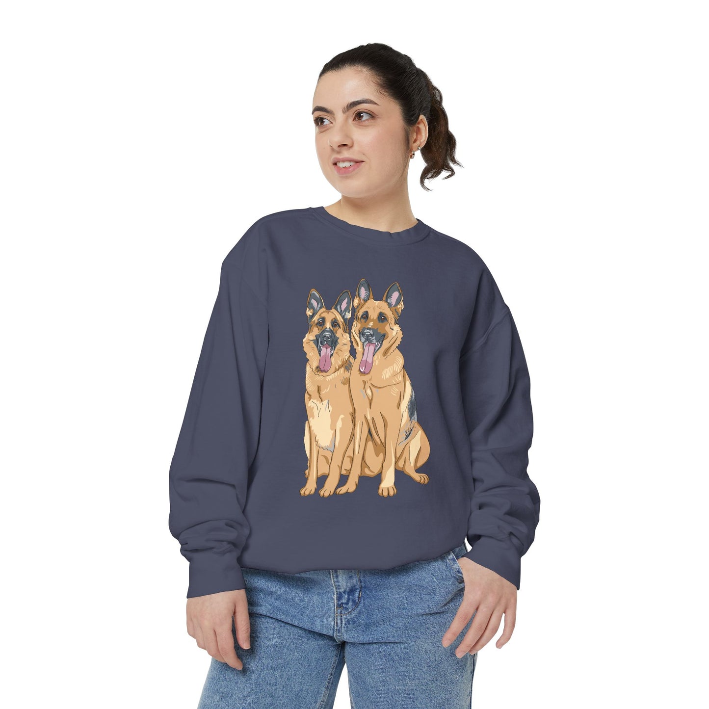 Unisex Dog Lover Sweatshirt With Graphic of Two German Shepherd Sloppily Sitting