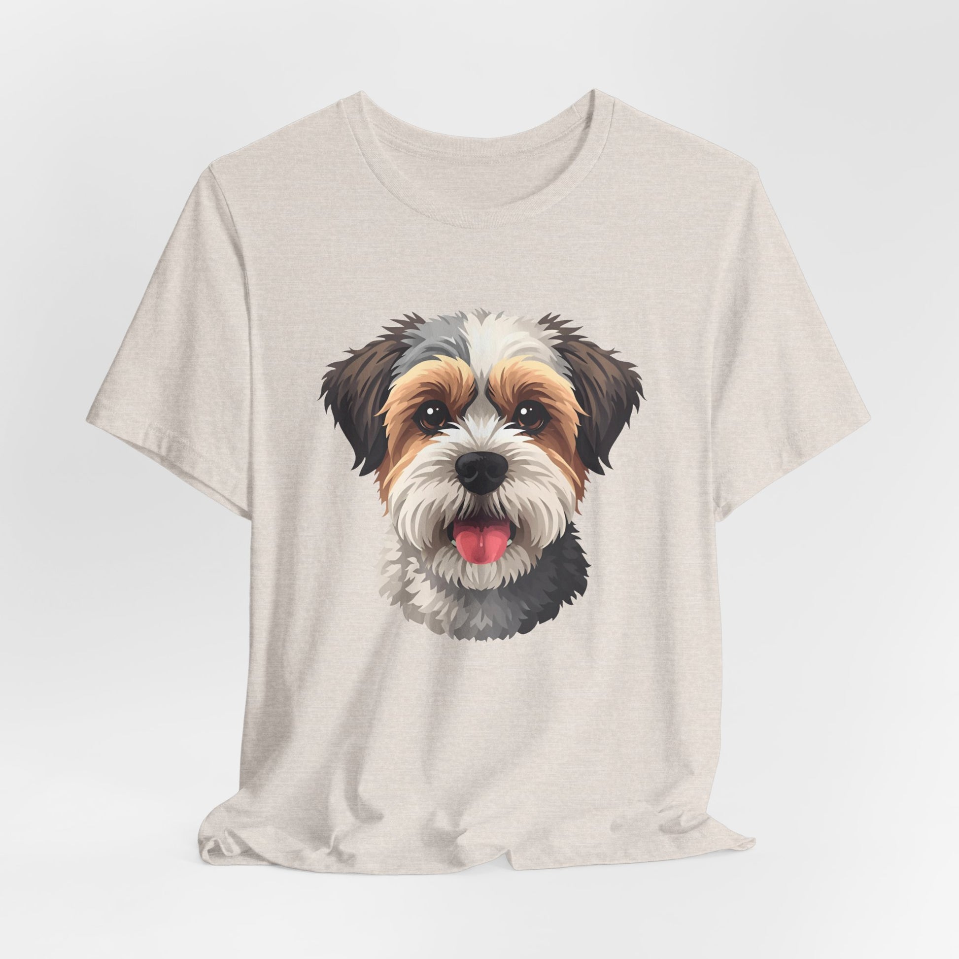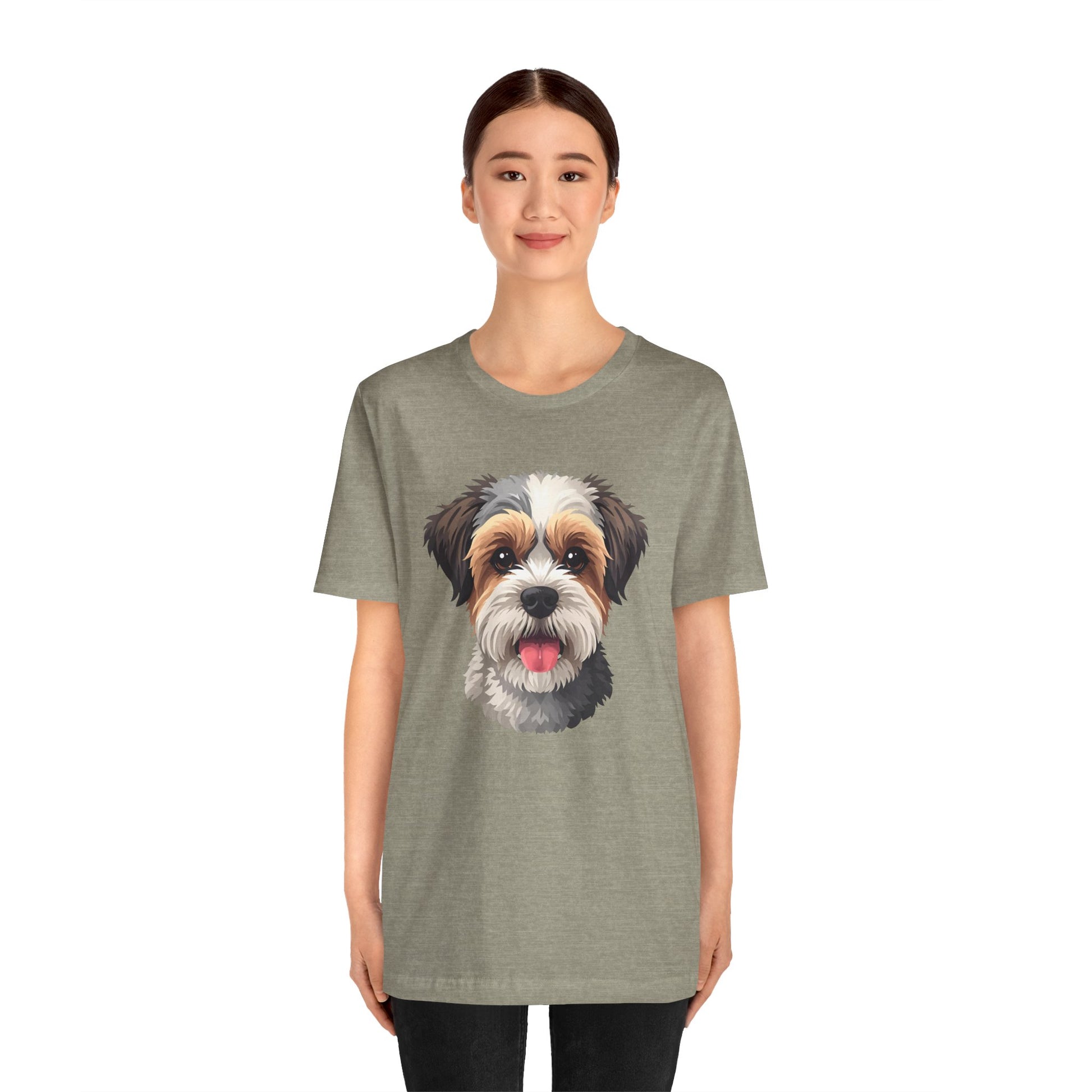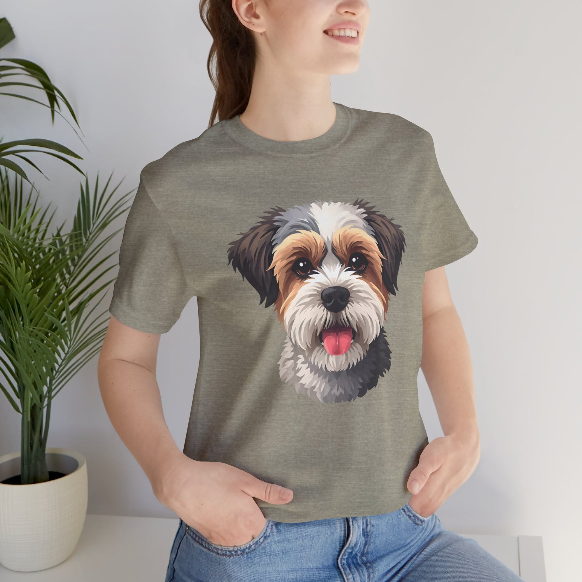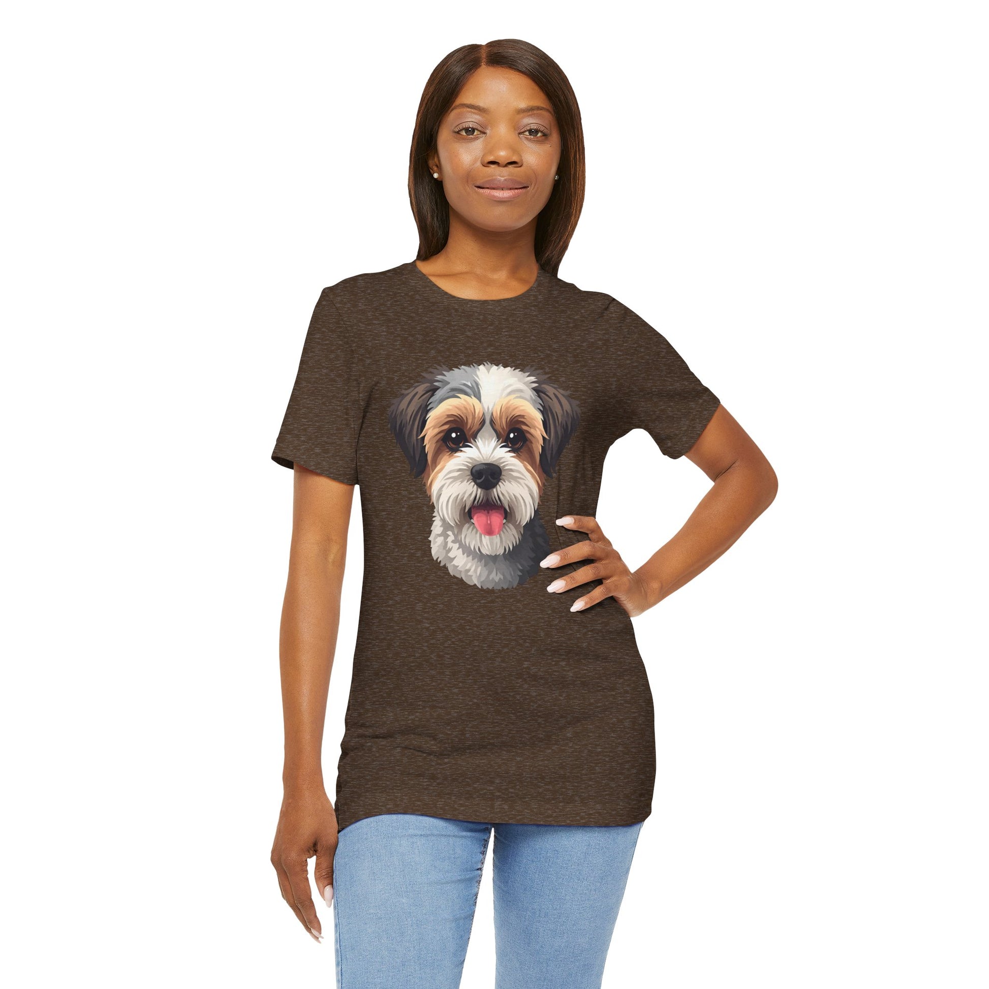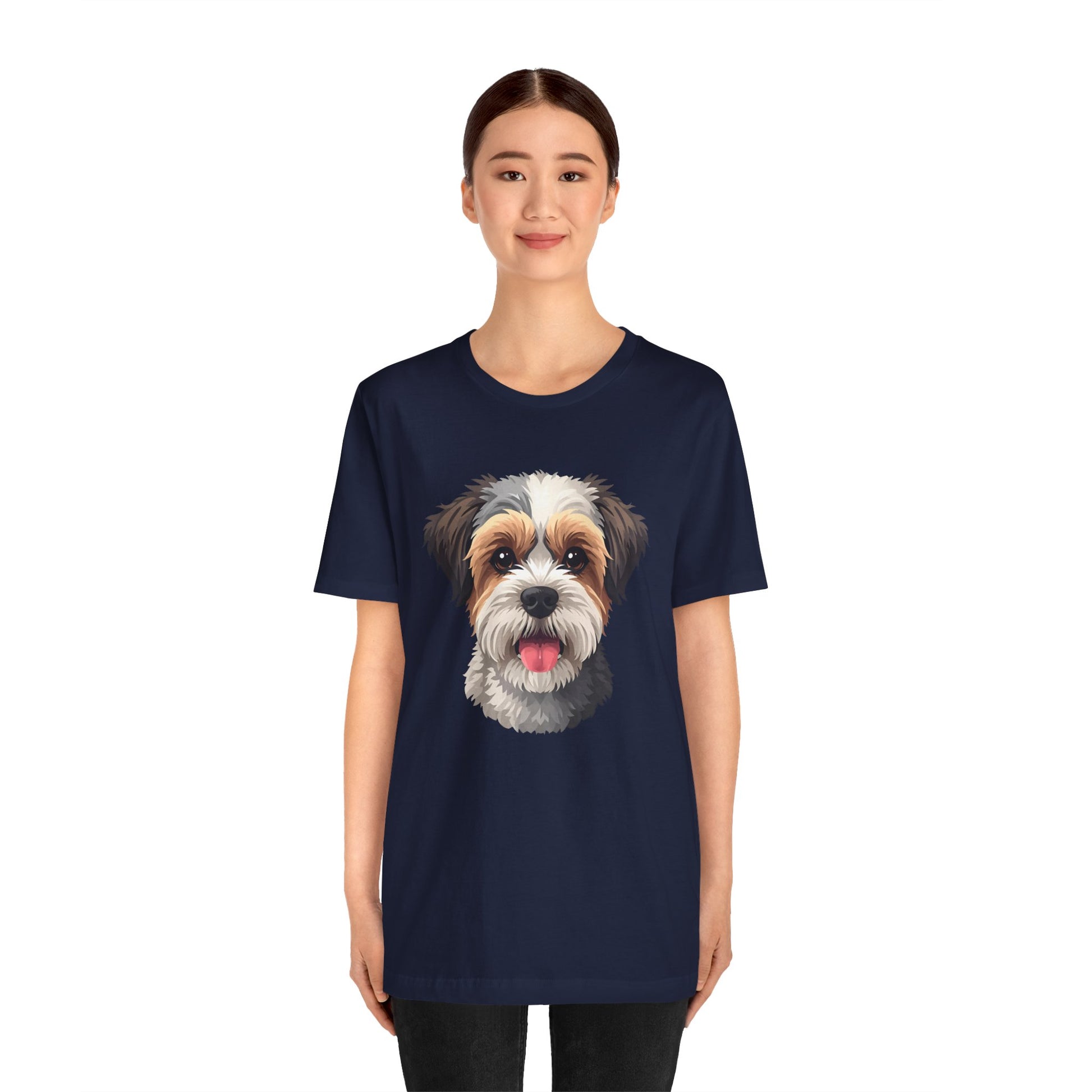 Showcase your love for your fluffy companion with this Unisex Dog Lover T-Shirt. It features an adorable 3D design of a cute Bichon Frise mix, making it a charming and thoughtful gift for any dog owner.