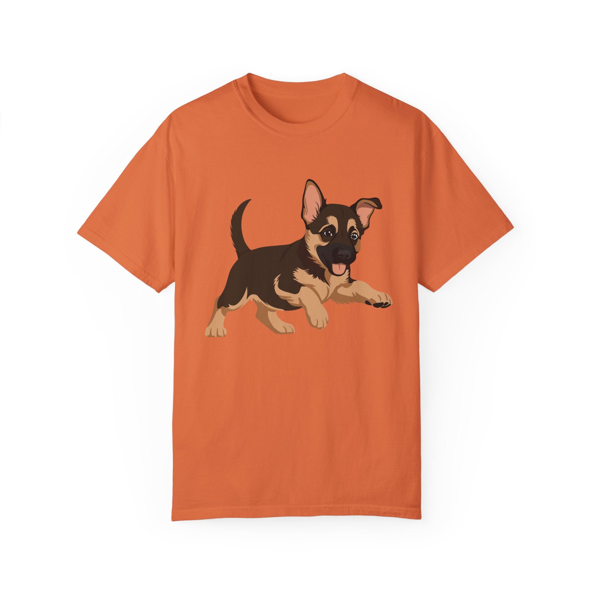 Capture the playful spirit of man's best friend with this charming unisex tee featuring an adorable graphic of a German Shepherd puppy in mid-play. The garment-dyed, 100% ring-spun cotton fabric (6.1 oz) gives this shirt a soft, lived-in feel with a subtle vintage look that gets better with each wash. Designed for both comfort and durability, the pre-shrunk fabric maintains its shape over time, while double-needle stitching reinforces every seam for long-lasting wear. The playful puppy design—whether chasing a ball, romping in the grass, or simply being irresistibly cute—celebrates the joyful energy of German Shepherds. Available in multiple colors and sizes (S to 4XL), this tee is perfect for dog lovers who want to showcase their affection for the breed in a fun, laid-back style. Ideal for casual outings, dog park adventures, or cozy days at home with your furry companion.