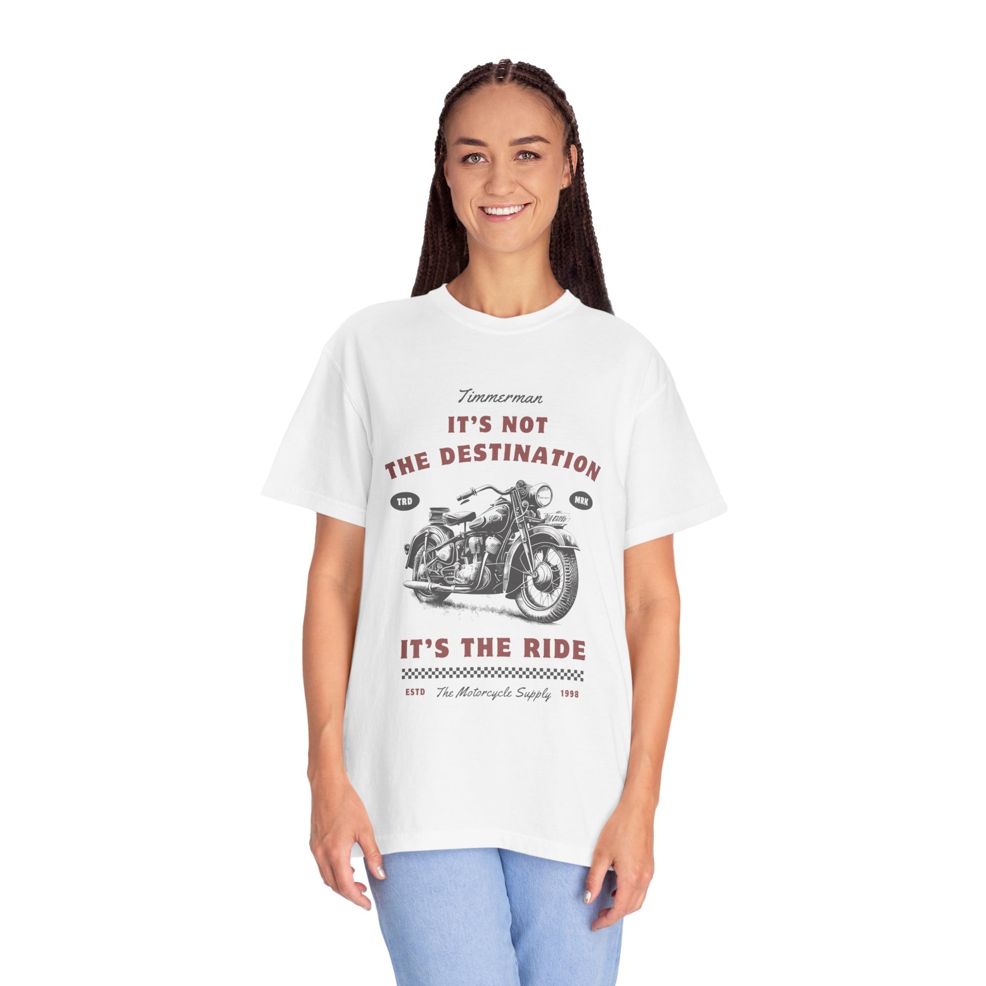 Celebrate the journey with our Vintage Motorcycle Ride T-Shirt, featuring the iconic motto "It's Not The Destination It's The Ride." This rugged yet soft tee is the ultimate gift for bikers and adventure seekers, perfect for road trips and everyday casual wear.